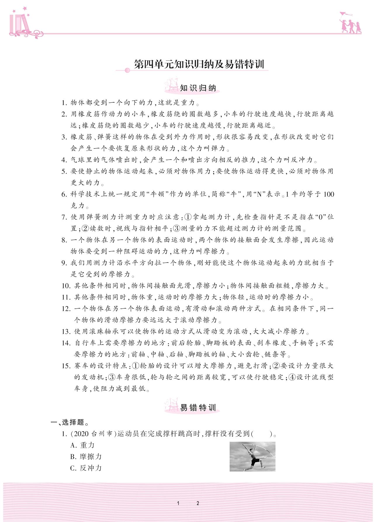 2020上册五年级科学教科版 第四单元知识归纳及易错特训