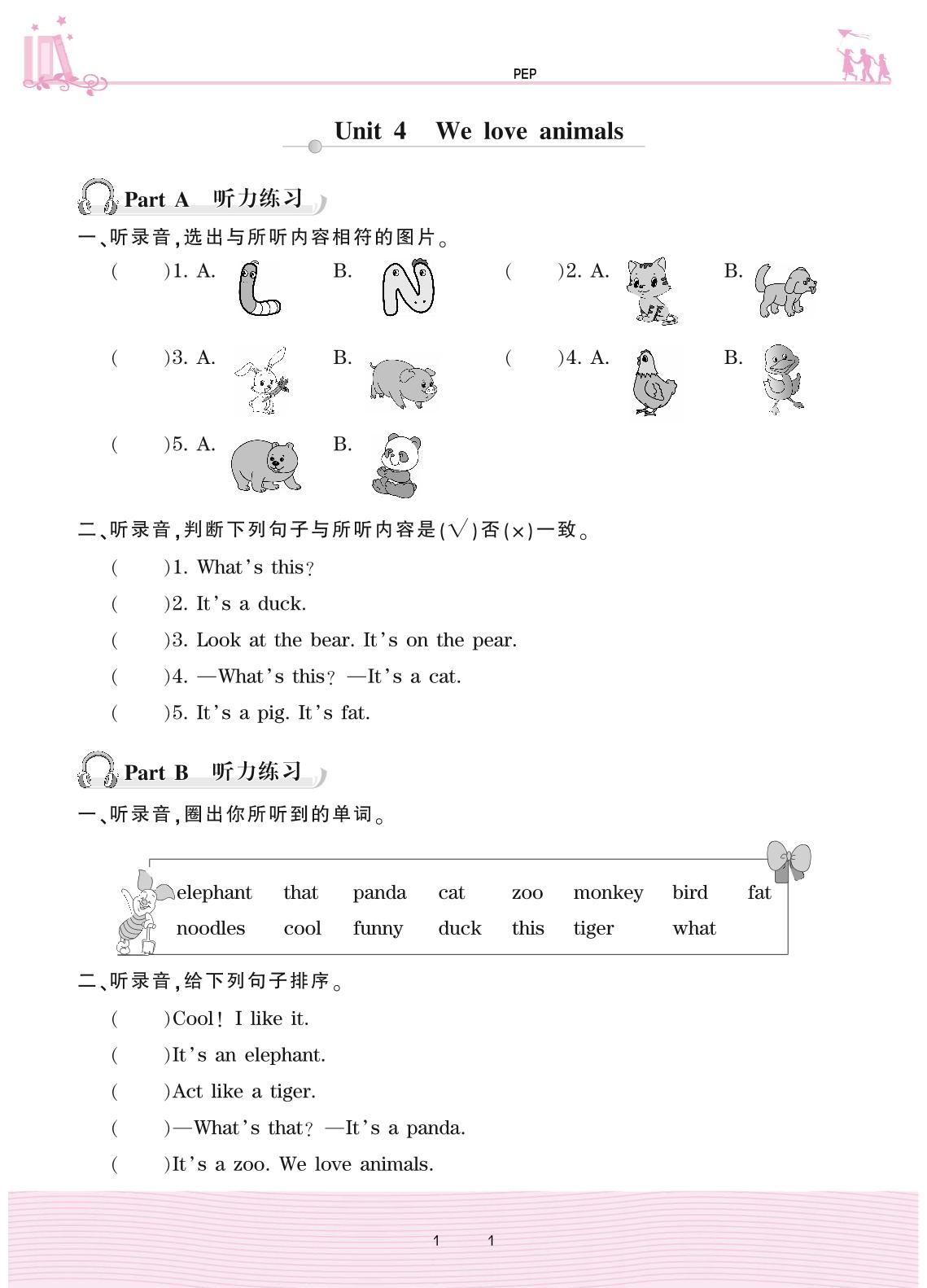 2020上册三年级英语人教PEP版 Unit 4 We love animals