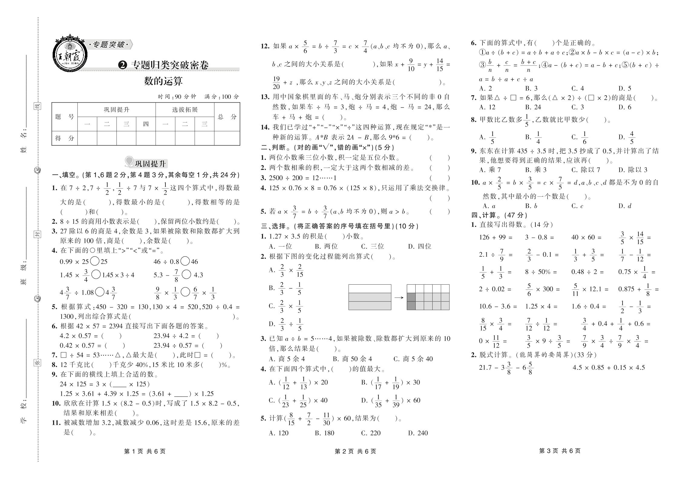小升初数学·王朝霞专题归类突破密卷——数的运算【2】