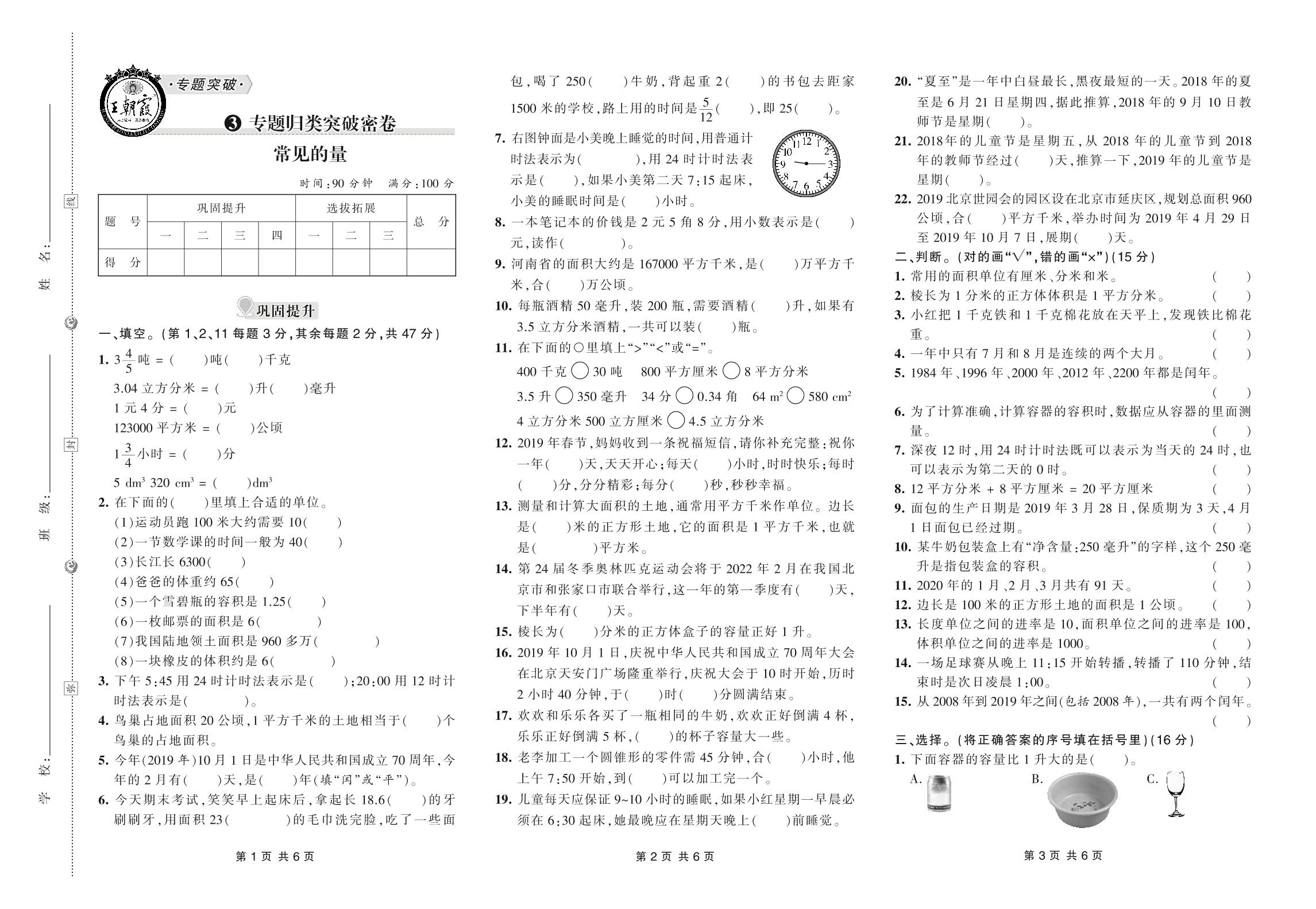 小升初数学·王朝霞专题归类突破密卷——常见的量【3】