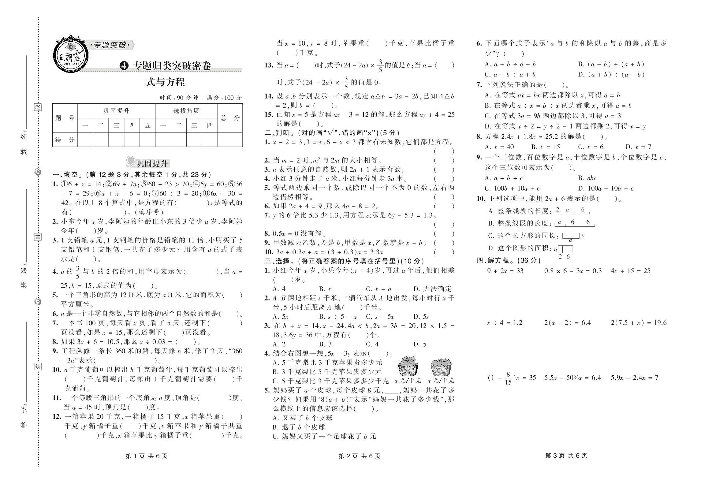小升初数学·王朝霞专题归类突破密卷——式与方程【4】