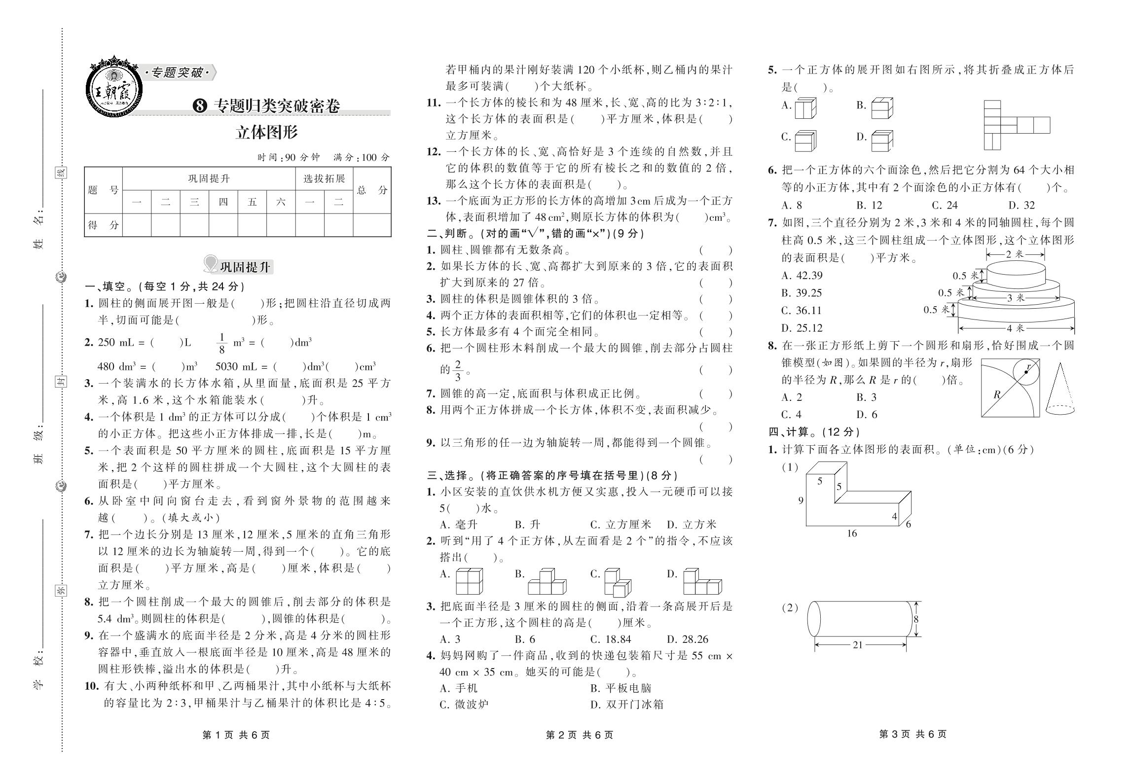 小升初数学·王朝霞专题归类突破密卷——立体图形【8】