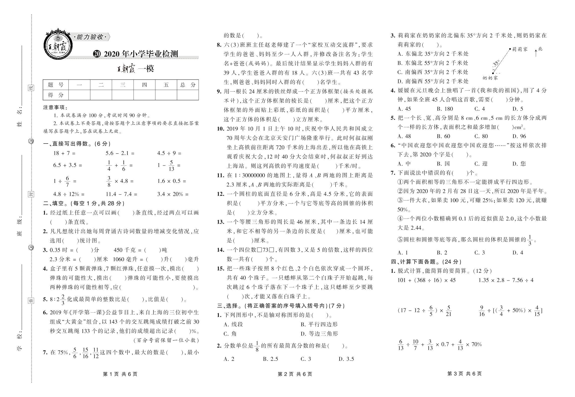 小升初数学小学毕业检测·王朝霞模拟卷【20】