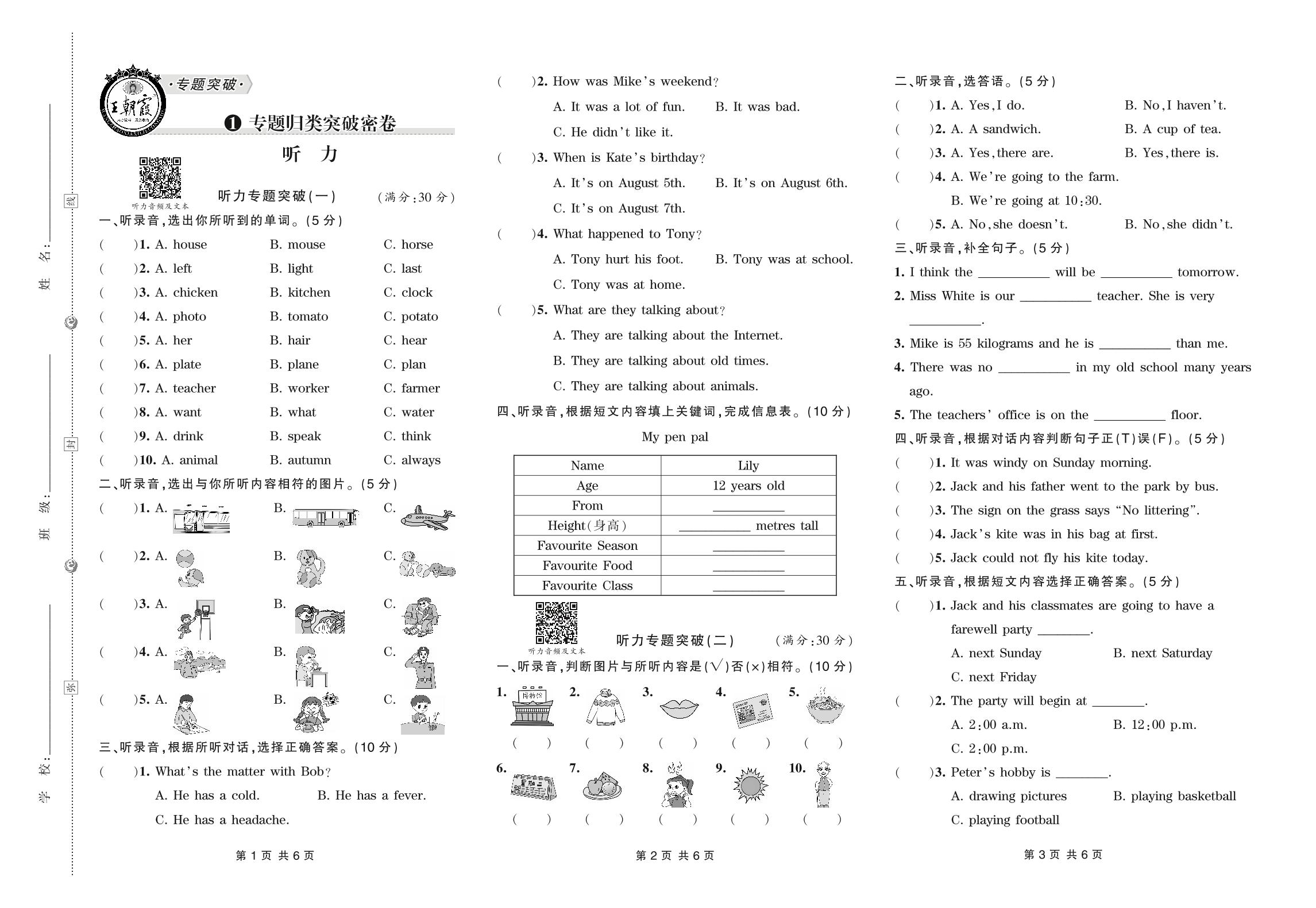 小升初英语·王朝霞专题归类突破密卷——听力【1】