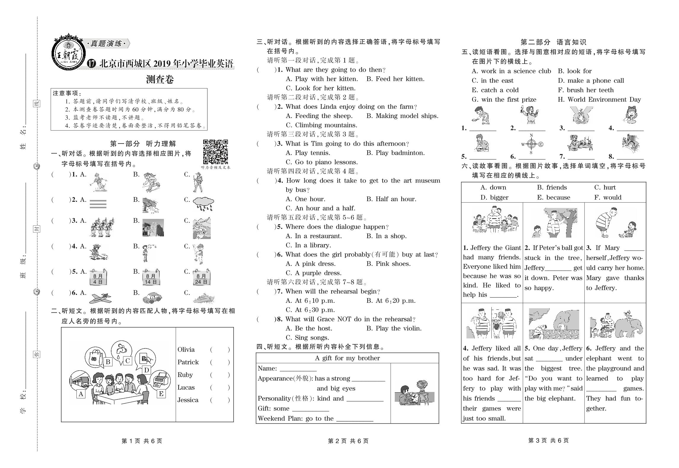 小升初英语北京市西城区2019年小学毕业英语测查卷【17】