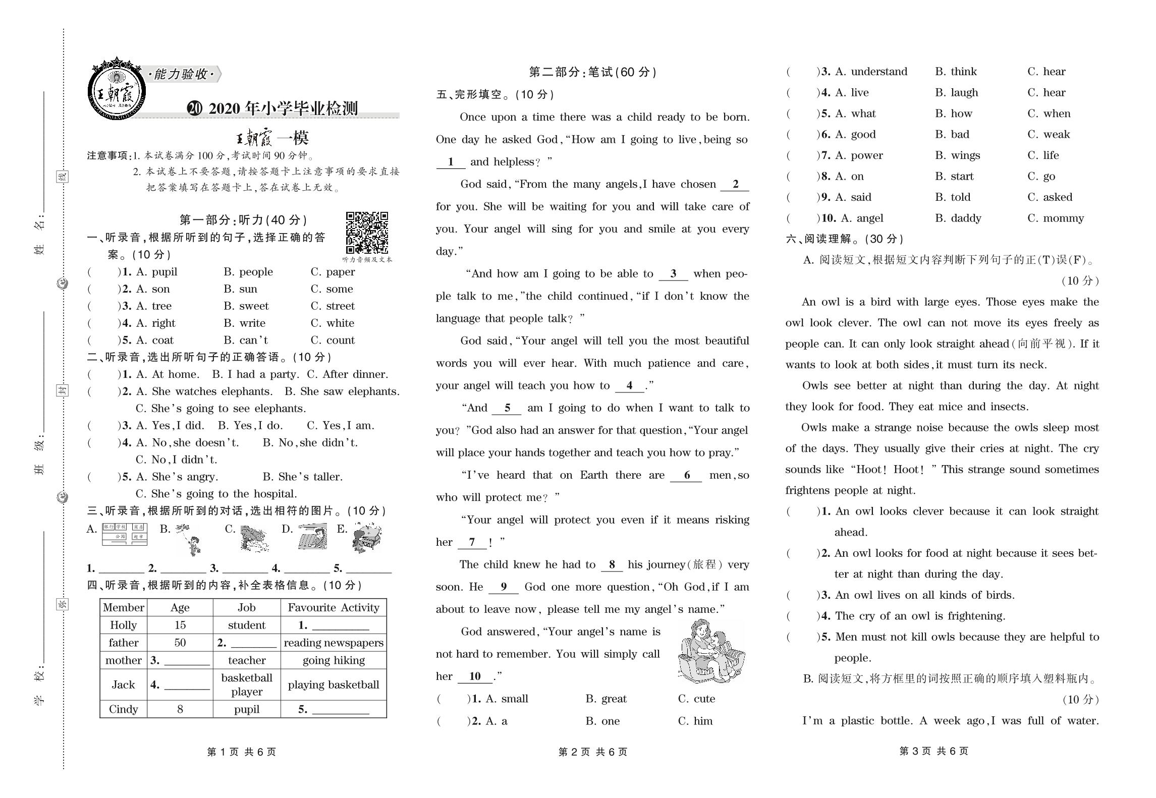 小升初英语小学毕业检测·王朝霞模拟卷【1】