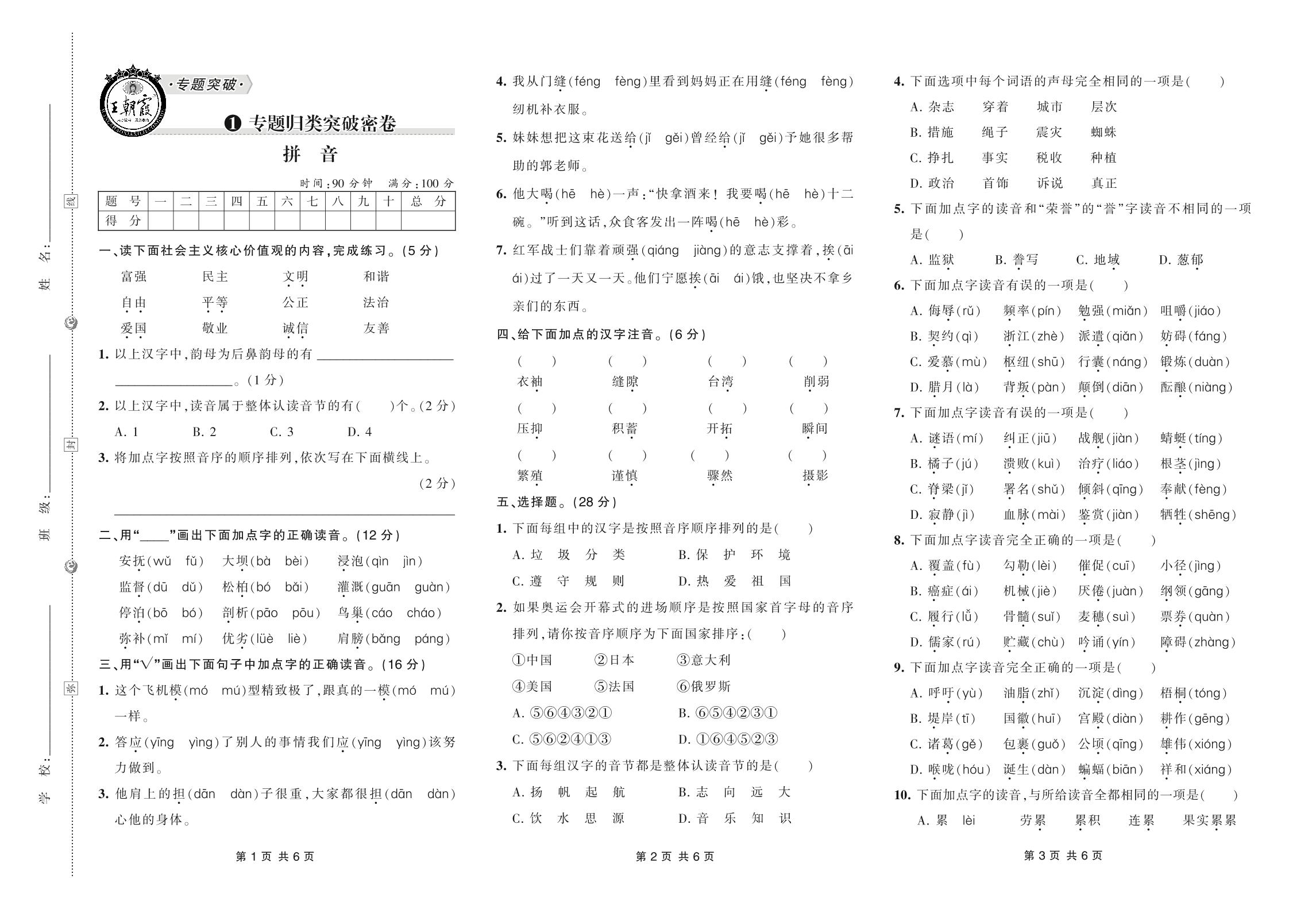 小升初语文·王朝霞专题归类突破密卷——拼音【1】