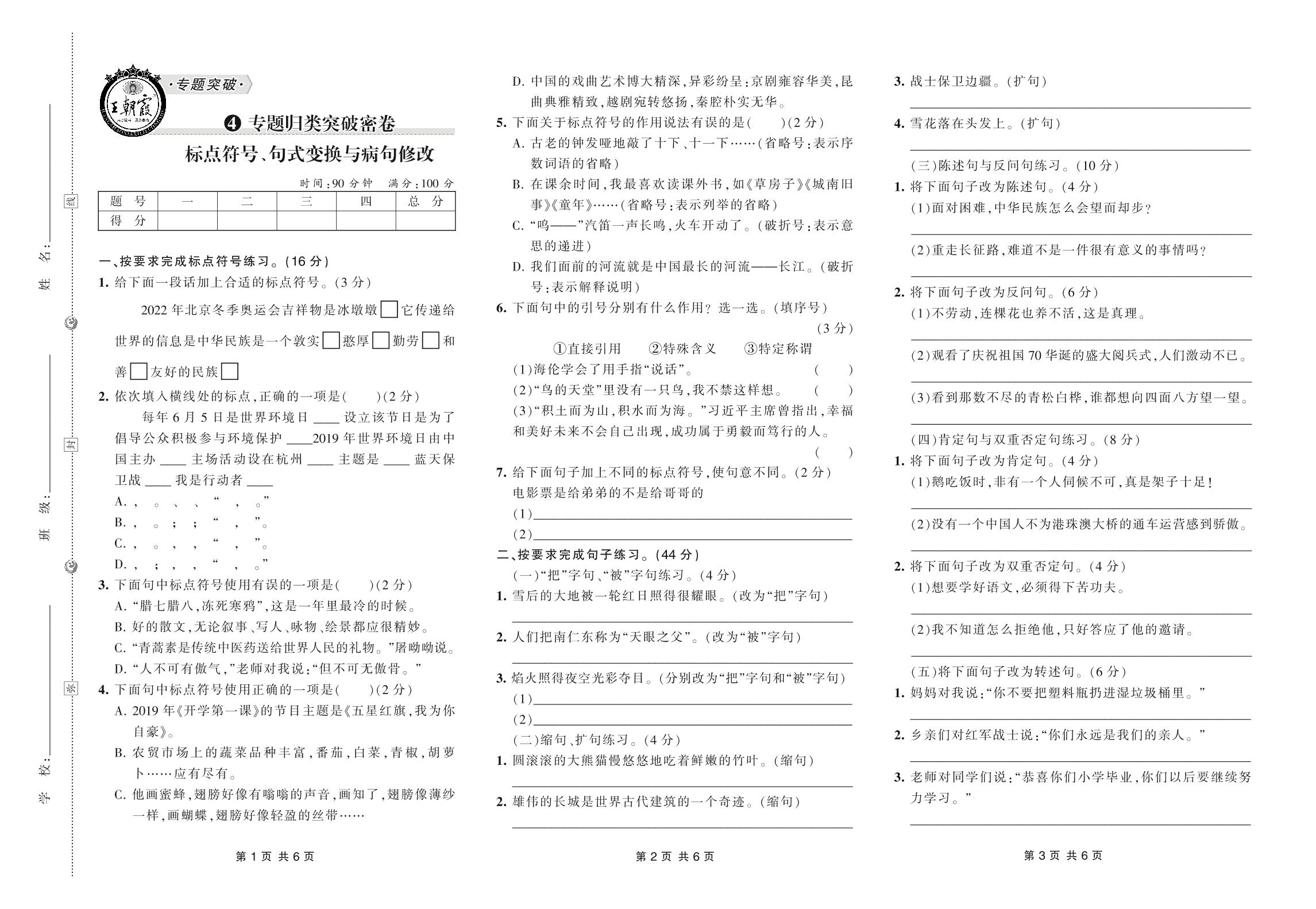 小升初语文·王朝霞专题归类突破密卷——标点符号、句式变换与病句修改【4】