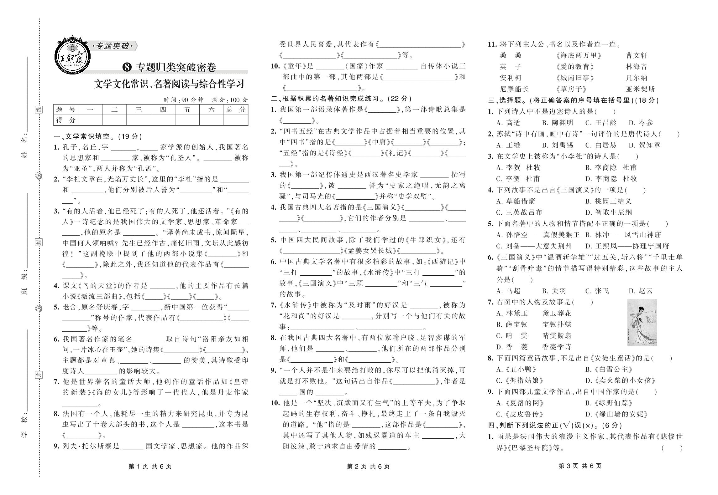 小升初语文·王朝霞专题归类突破密卷——文学文化常识、名著阅读与综合性学习【8】