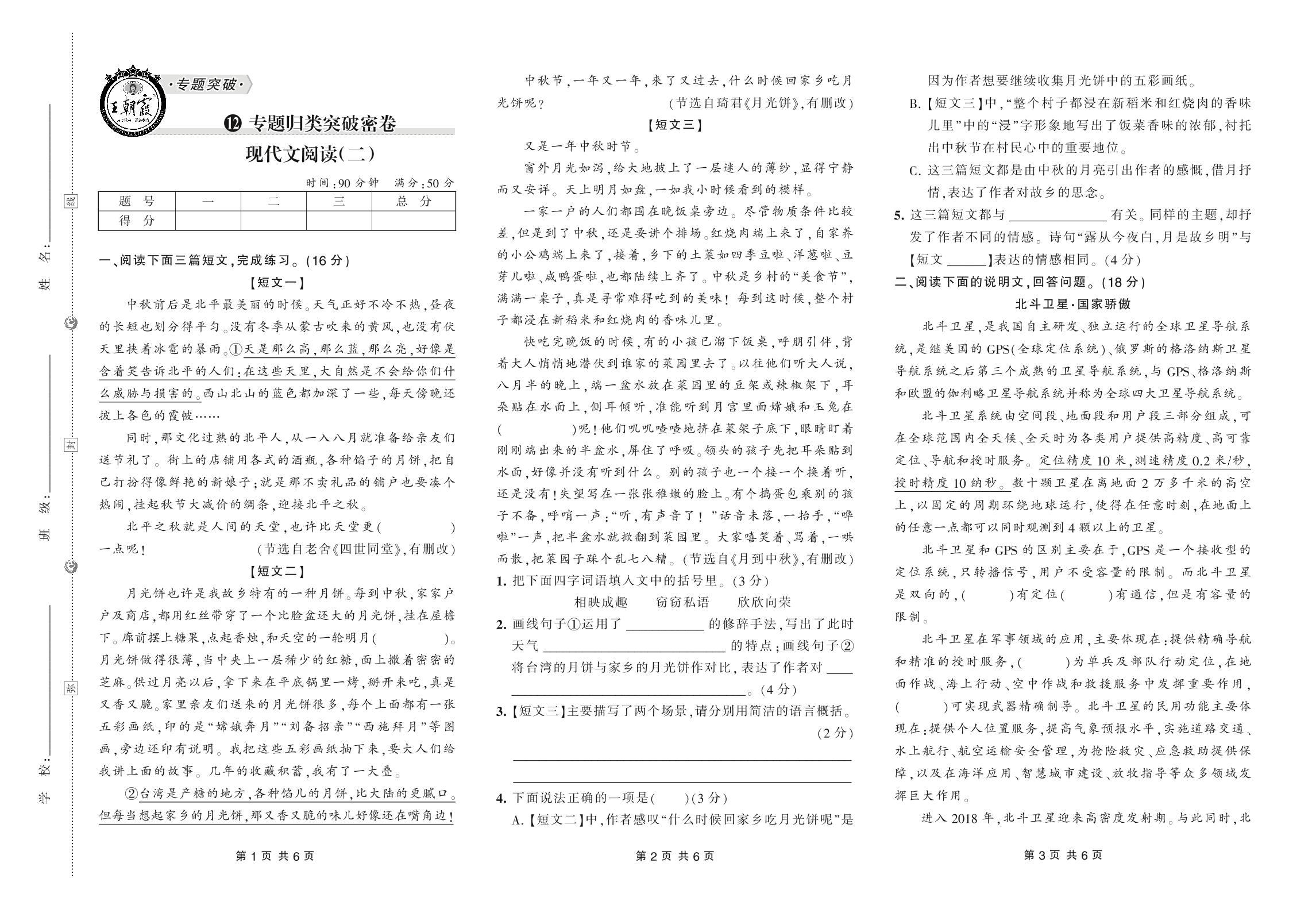 小升初语文·王朝霞专题归类突破密卷——现代文阅读(二)【12】
