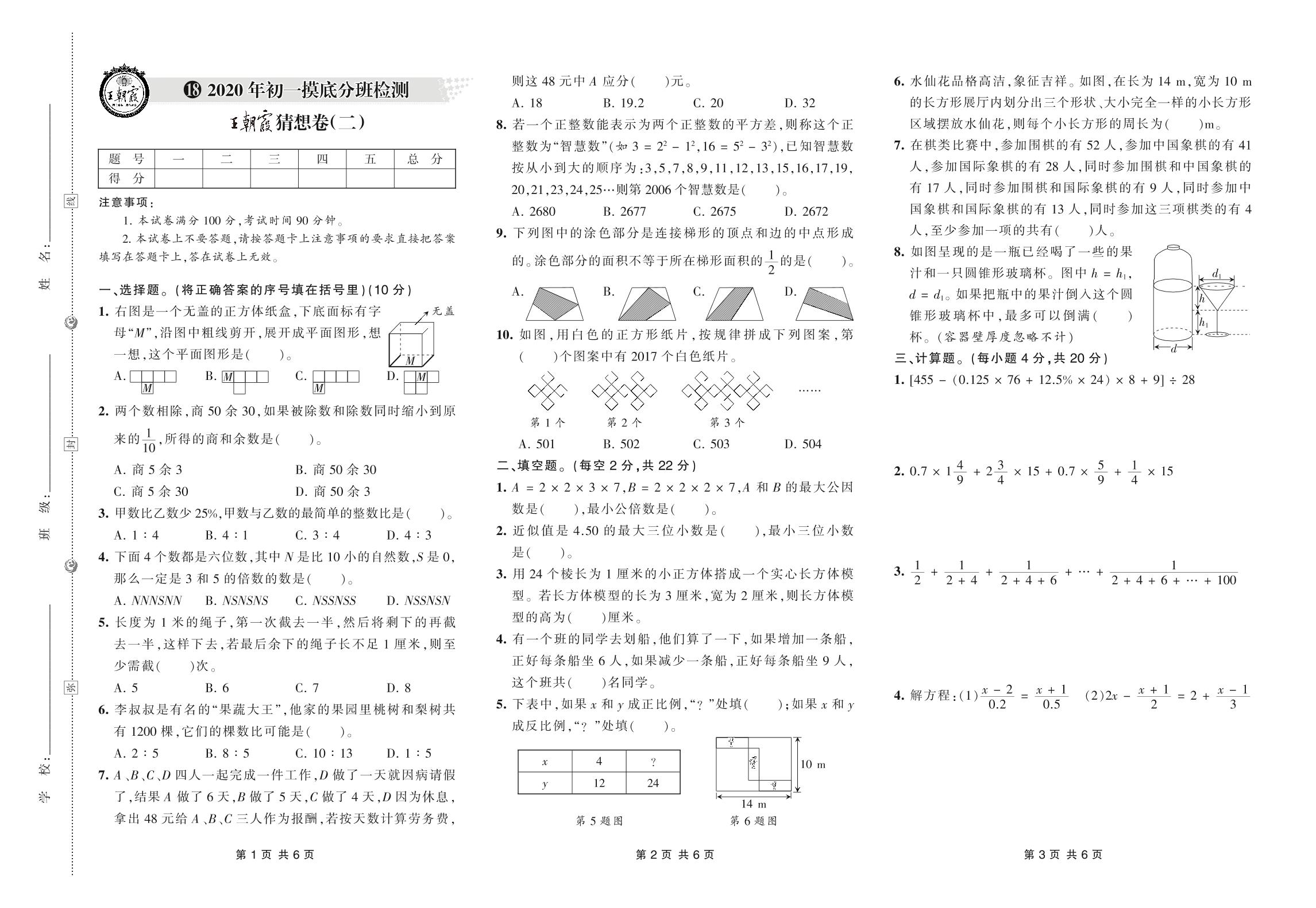 小升初数学初一摸底分班检测王朝霞猜想卷【18】