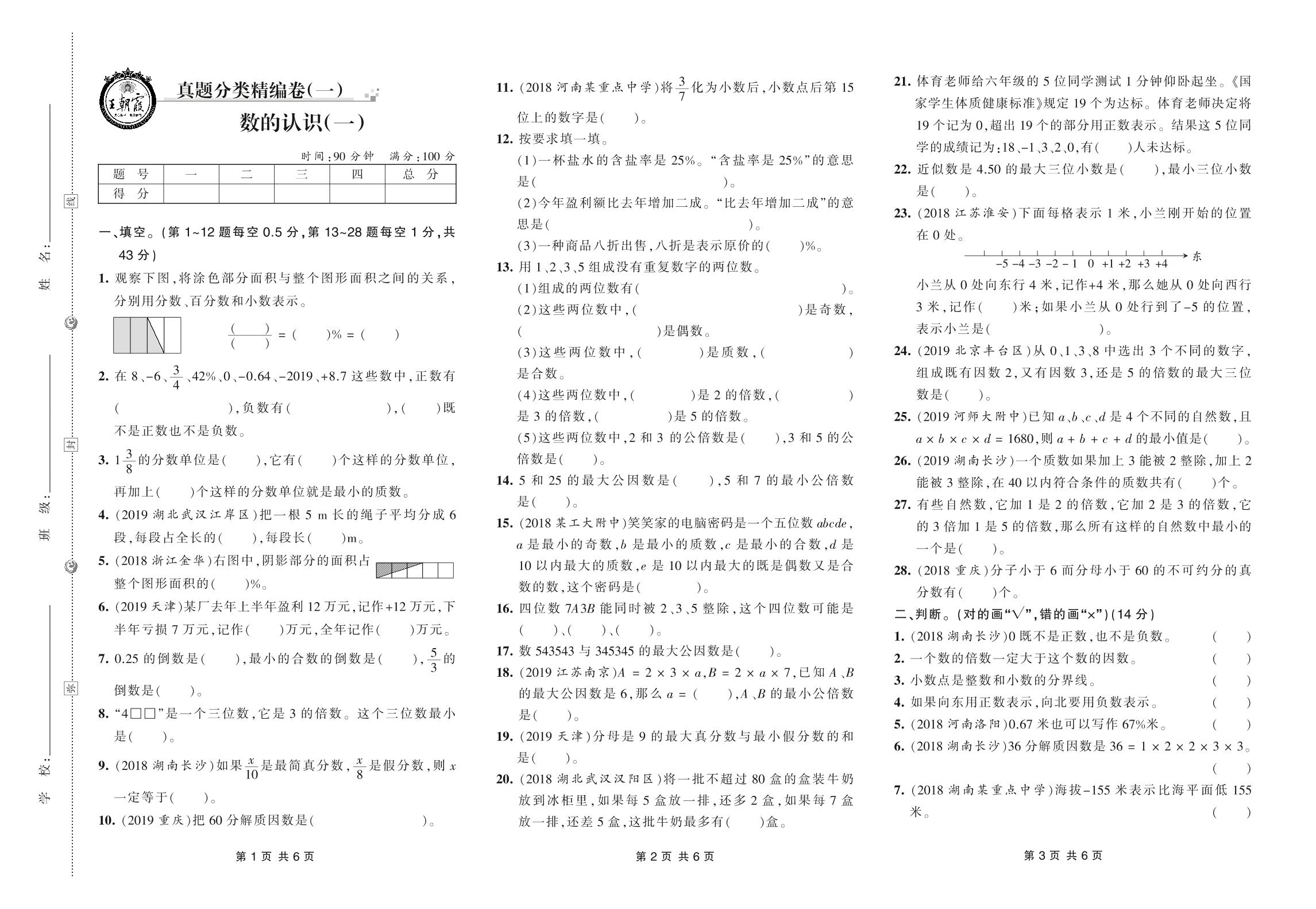小升初数学真题分类·王朝霞精编卷——数的认识(一)【1】