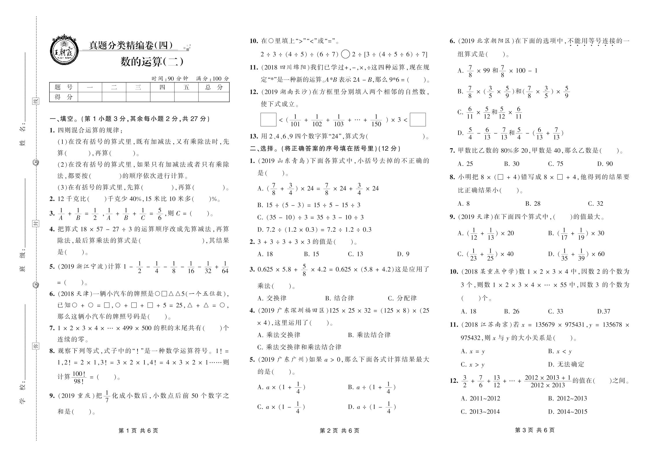 小升初数学真题分类·王朝霞精编卷——数的运算(二)【4】