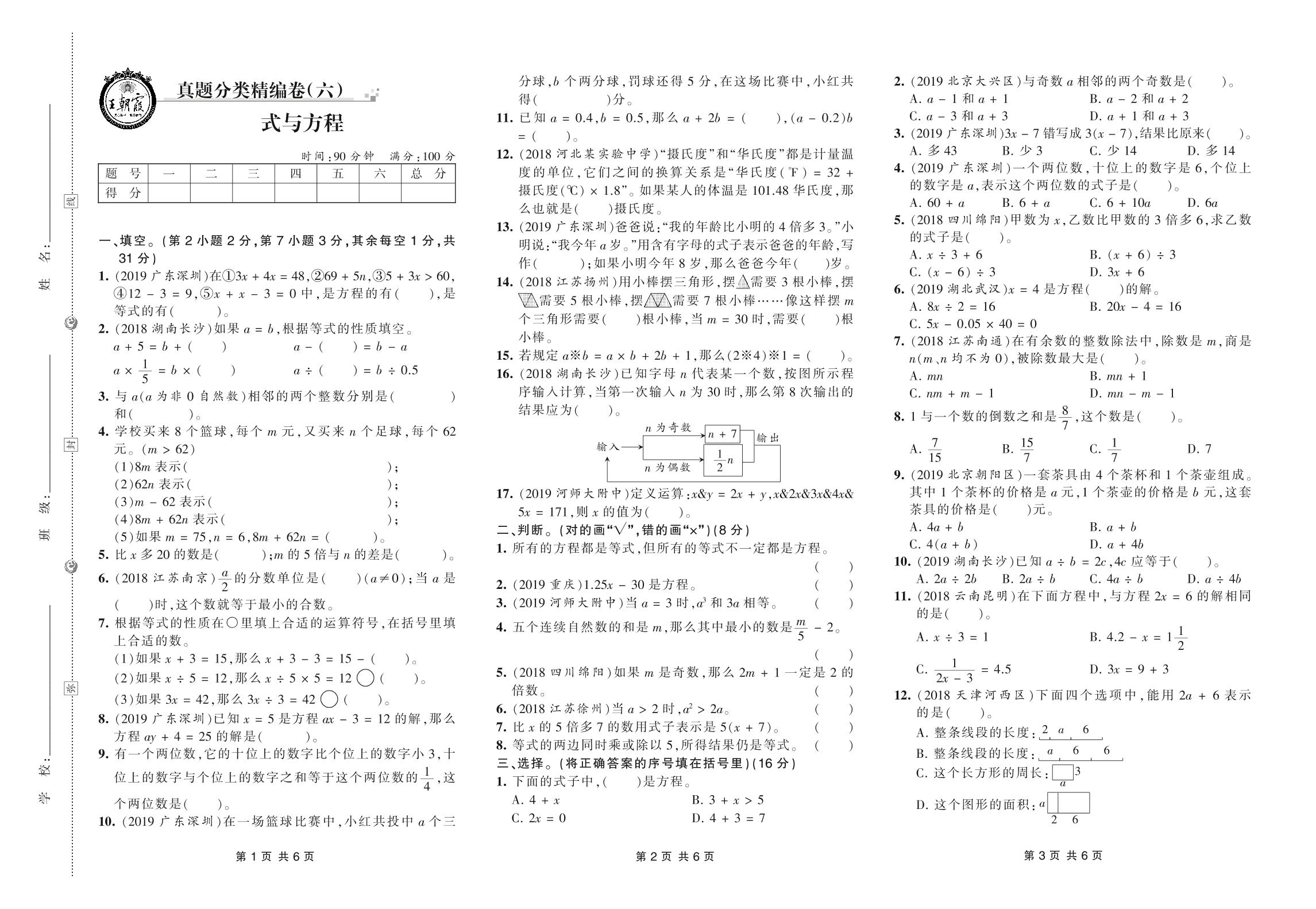 小升初数学真题分类·王朝霞精编卷——式与方程【6】