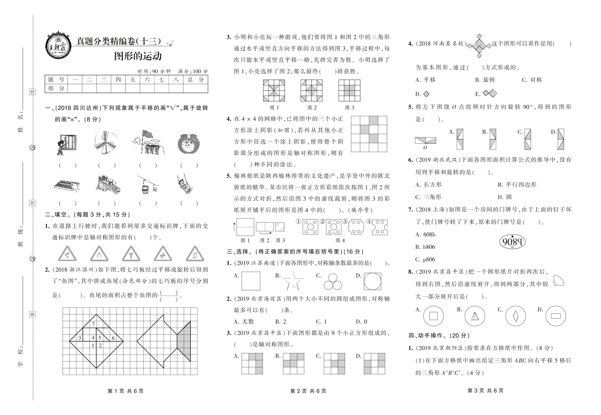 2020全一册六年级数学不分版本 小升初数学真题分类·王朝霞精编卷——图形的运动【13】