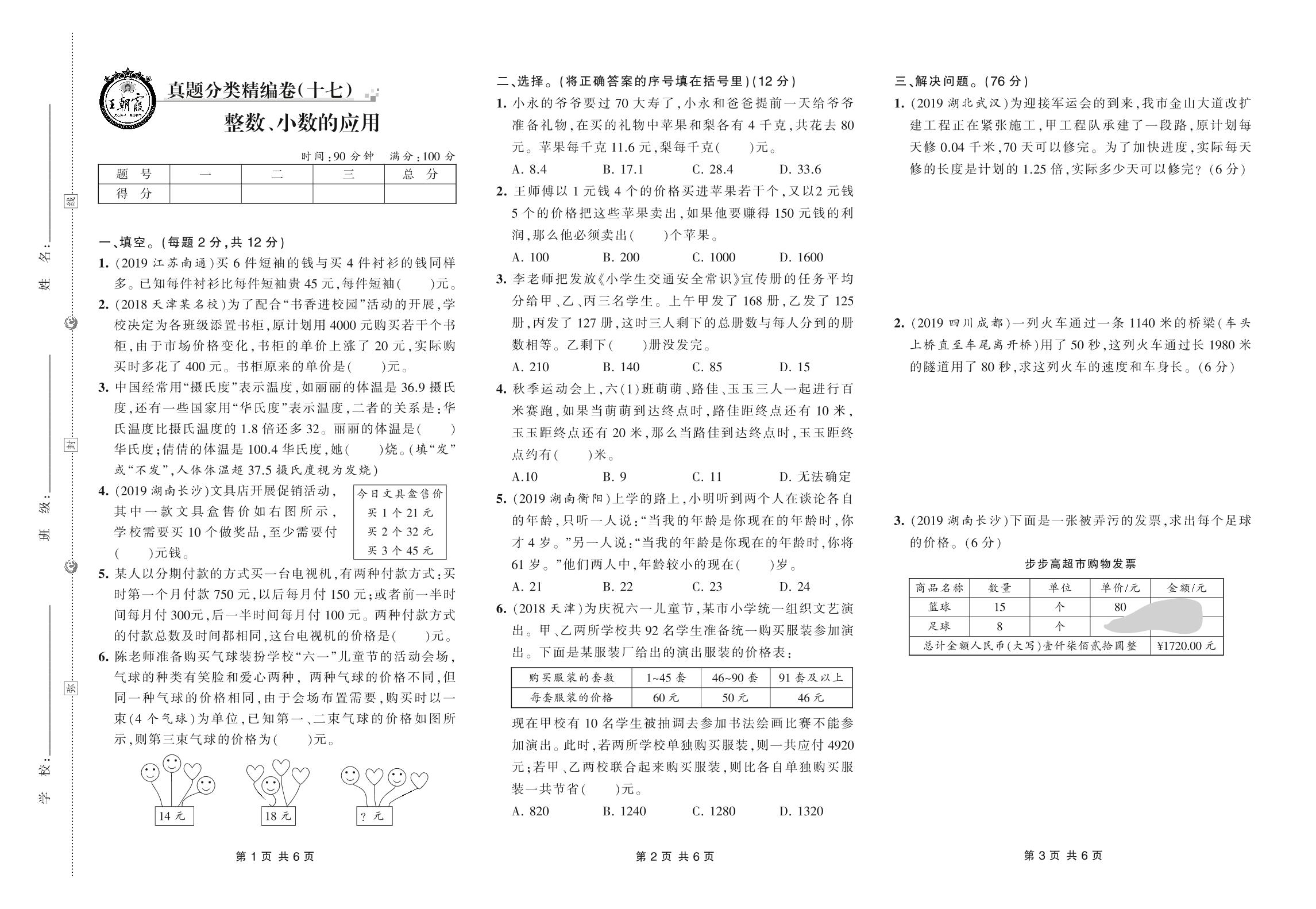 小升初数学真题分类·王朝霞精编卷——整数、小数的应用【17】