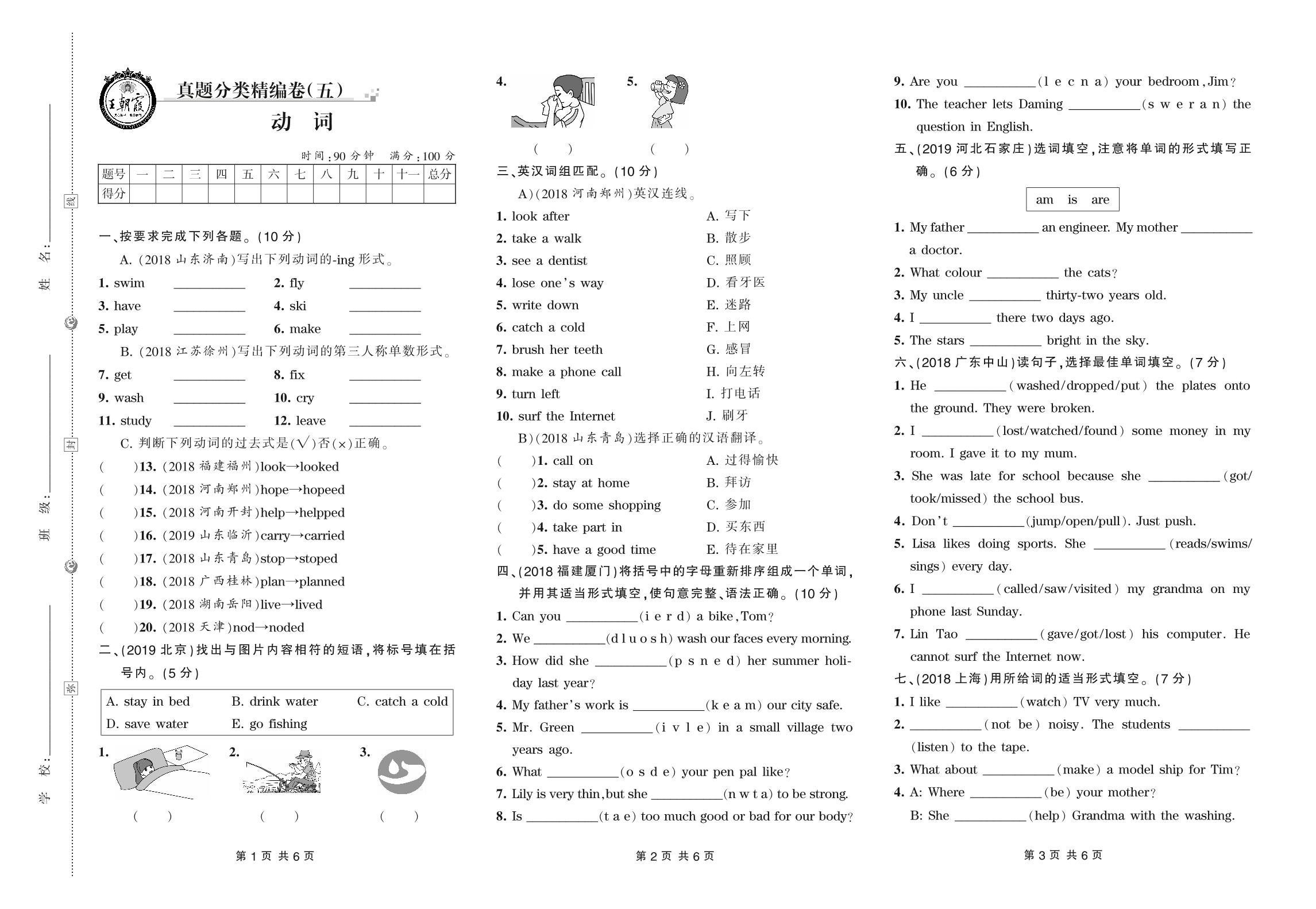 小升初英语真题分类·王朝霞精编卷——动词【5】