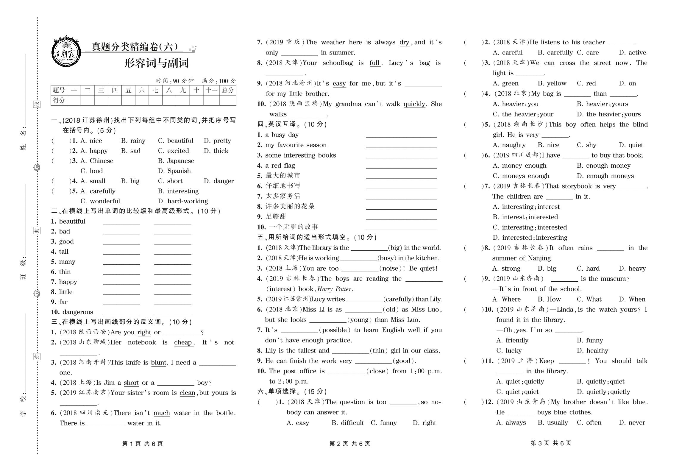 小升初英语真题分类·王朝霞精编卷——形容词与副词【6】