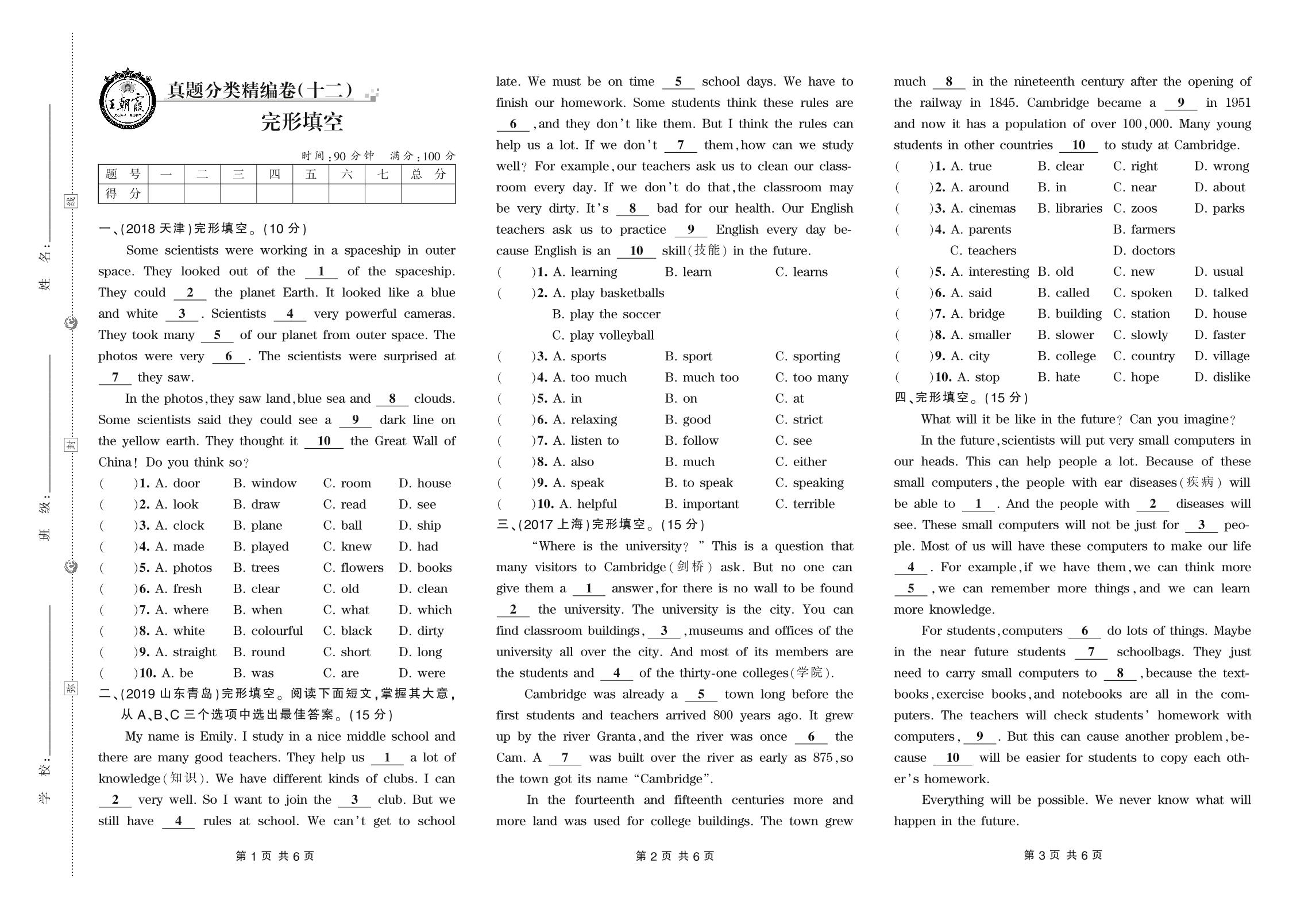 小升初英语真题分类·王朝霞精编卷——完形填空【12】