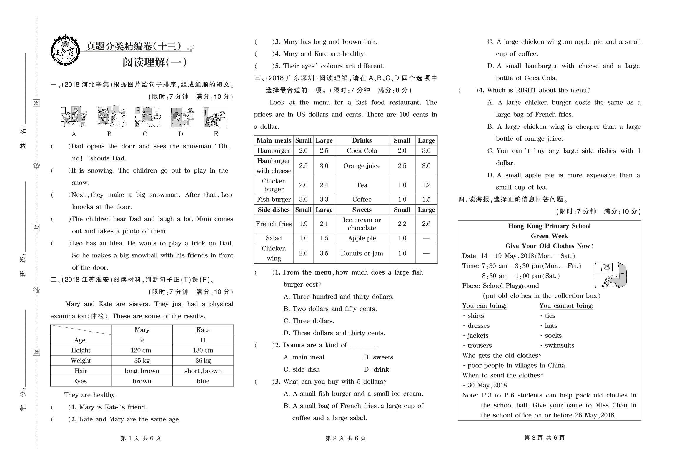 小升初英语真题分类·王朝霞精编卷——阅读理解(一)【13】