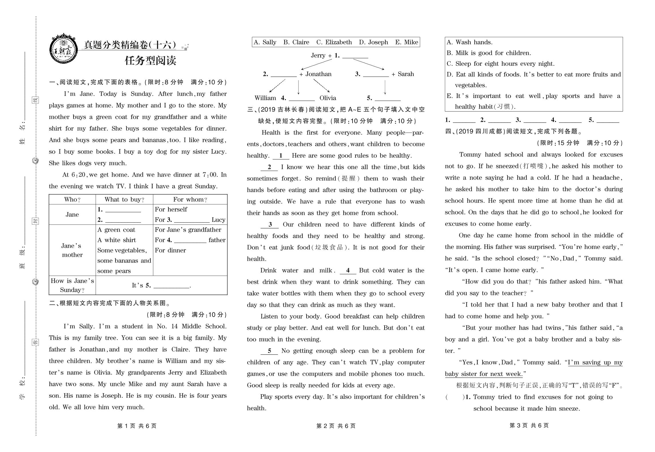 小升初英语真题分类·王朝霞精编卷——任务型阅读【16】
