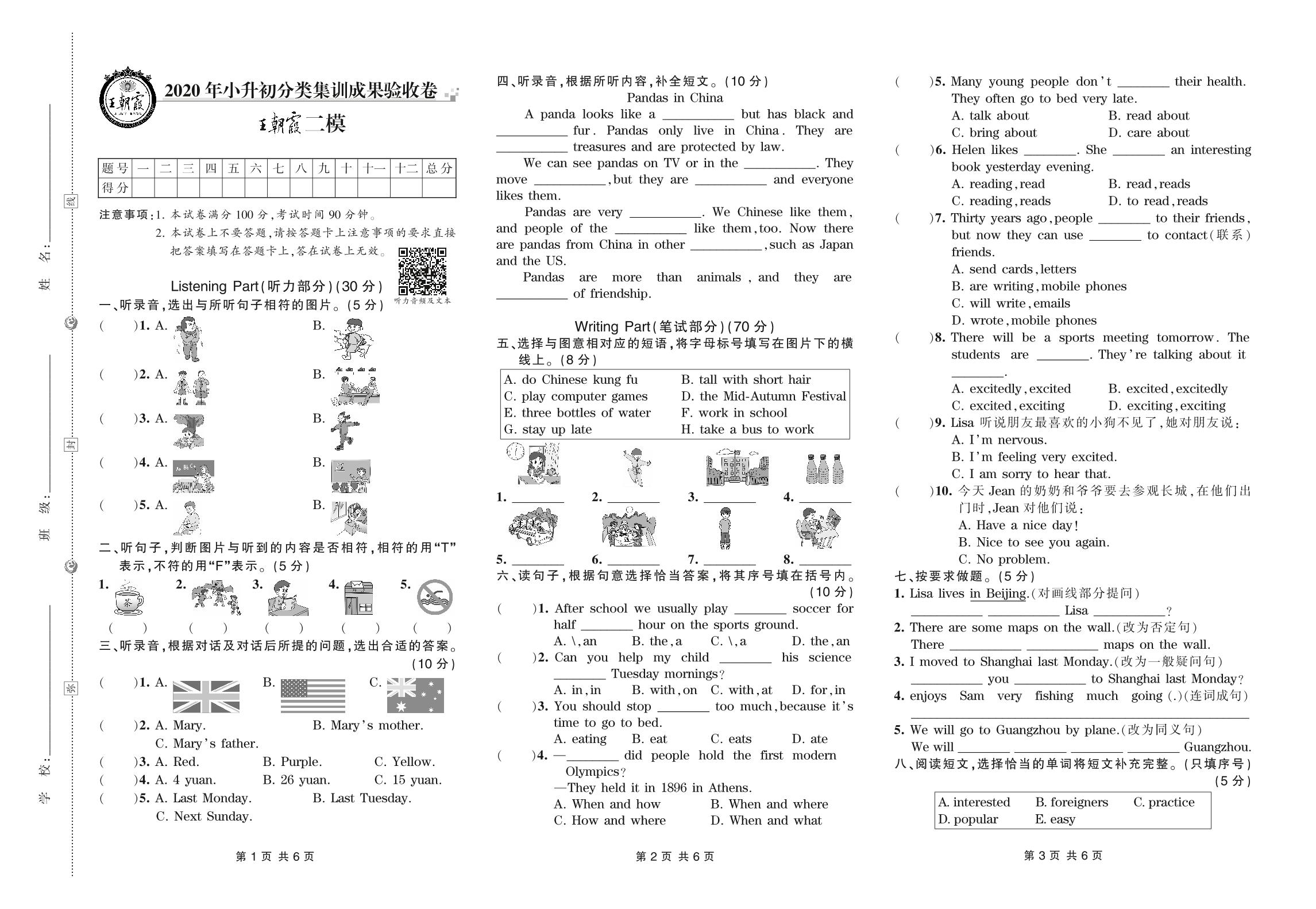 2020全一册六年级英语不分版本 小升初英语分类集训成果验收卷·王朝霞模拟卷【2】