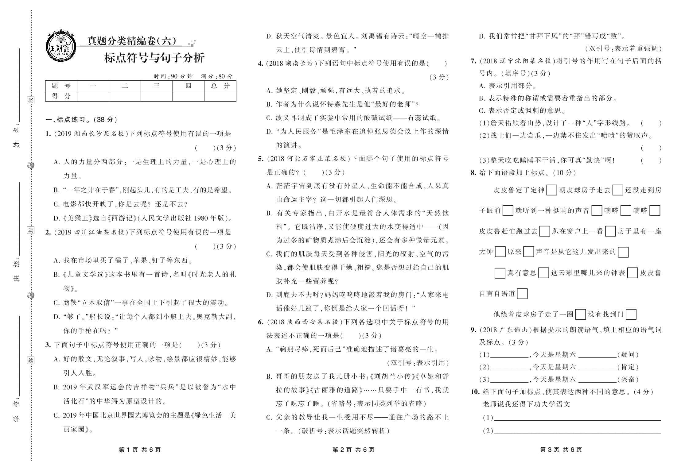 小升初语文真题分类·王朝霞精编卷——标点符号与句子分析【6】