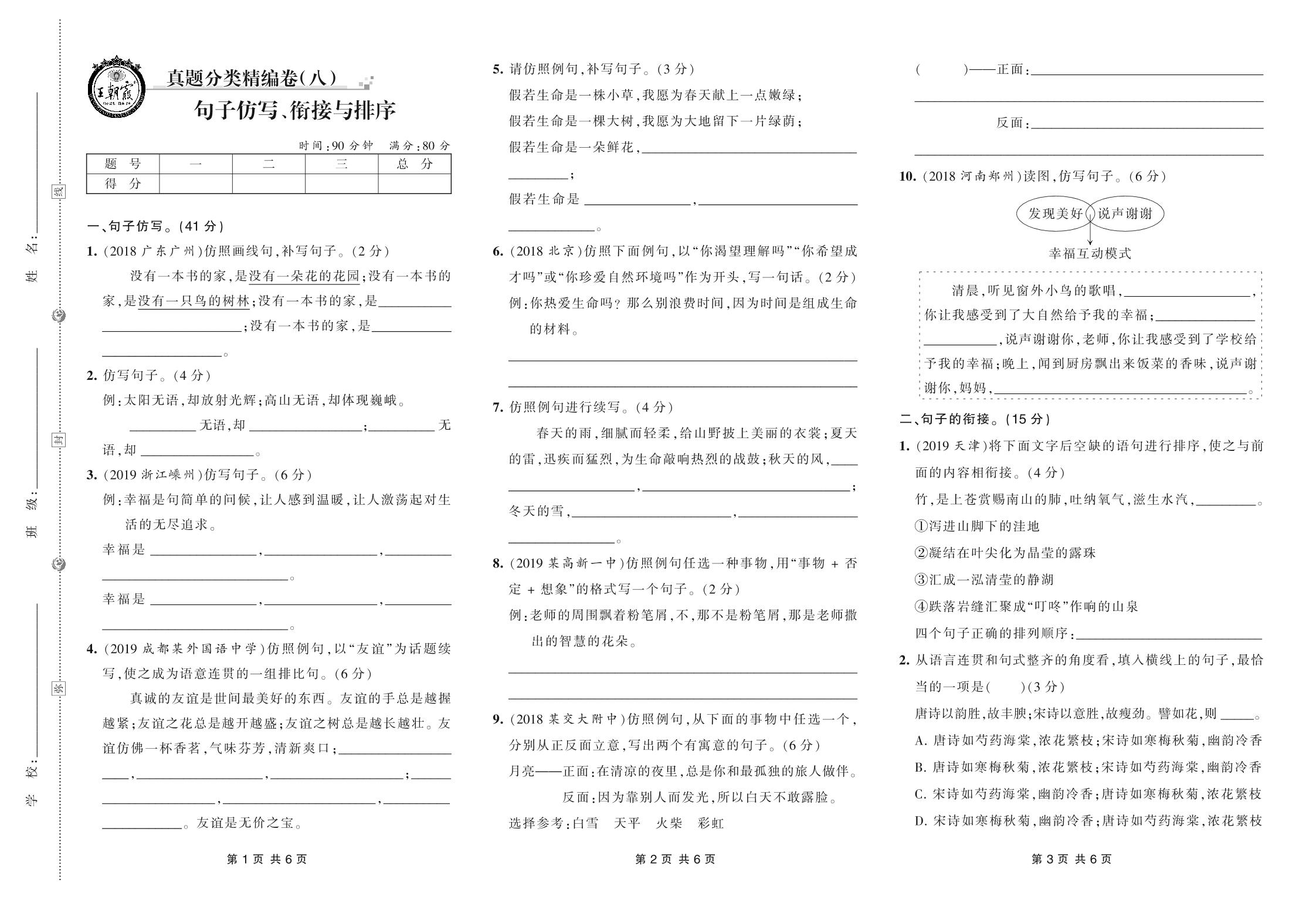 小升初语文真题分类·王朝霞精编卷——句子仿写、衔接与排序【8】