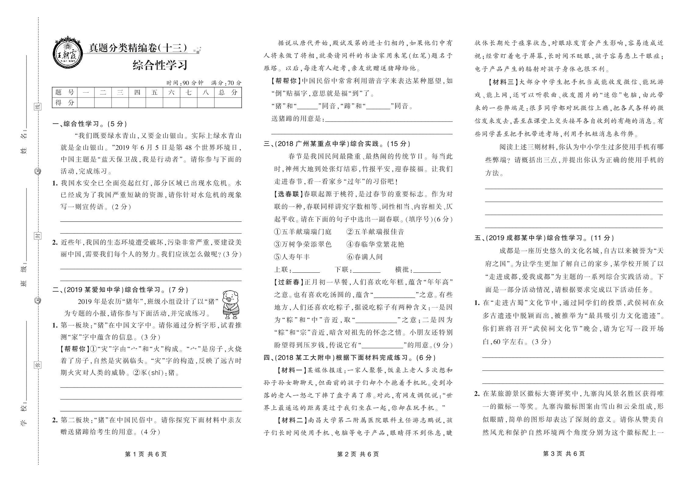 小升初语文真题分类·王朝霞精编卷——综合性学习【13】