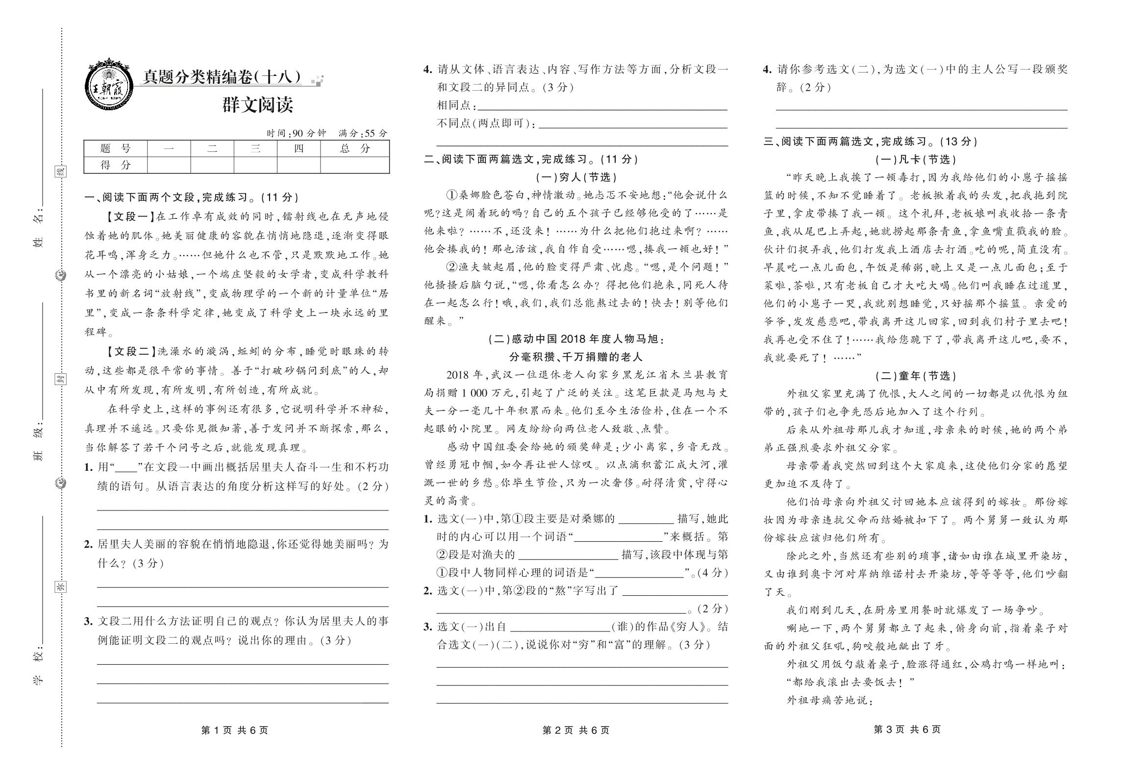 小升初语文真题分类·王朝霞精编卷——群文阅读【18】