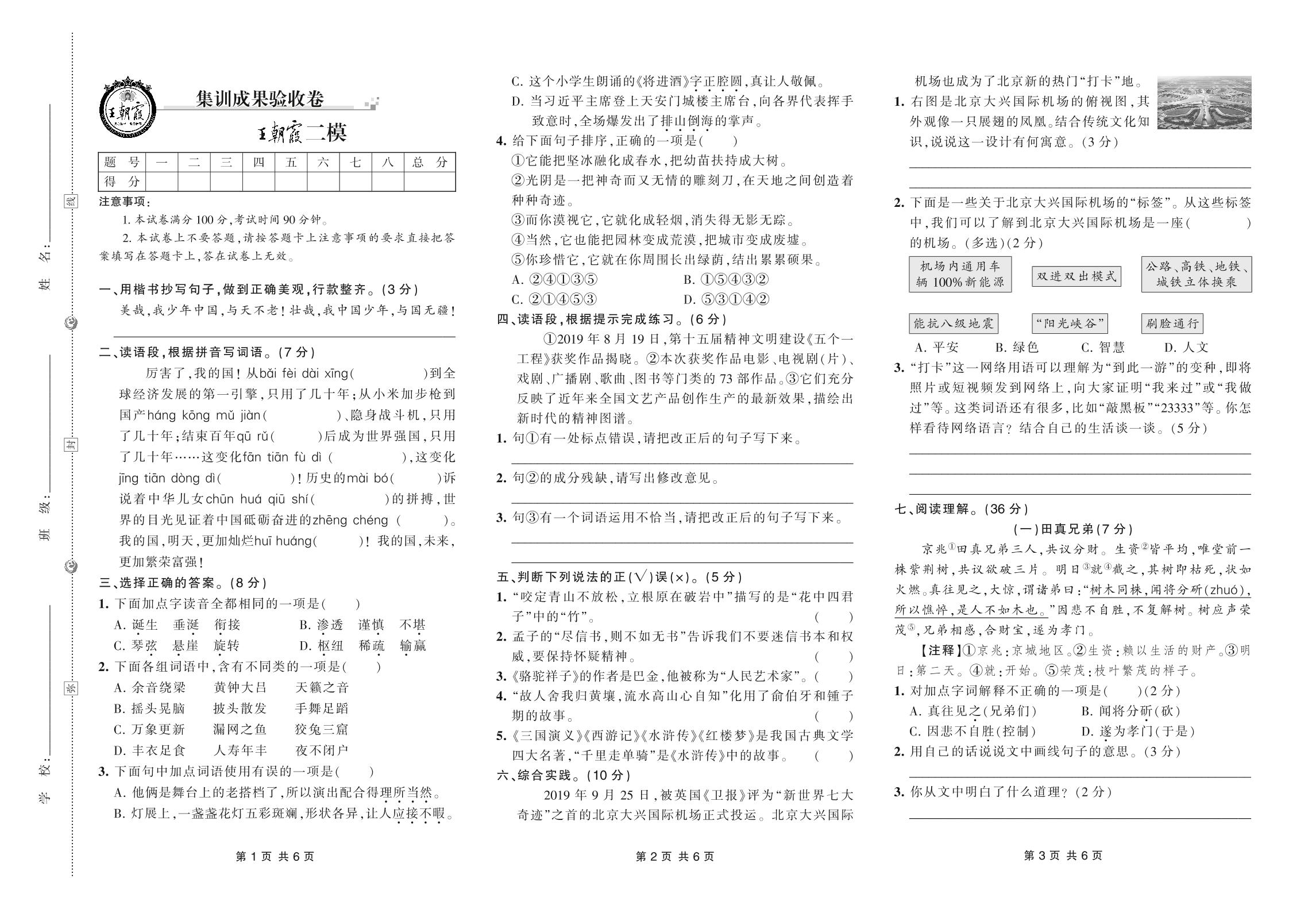 小升初语文分类集训成果验收卷王朝霞模拟卷【2】