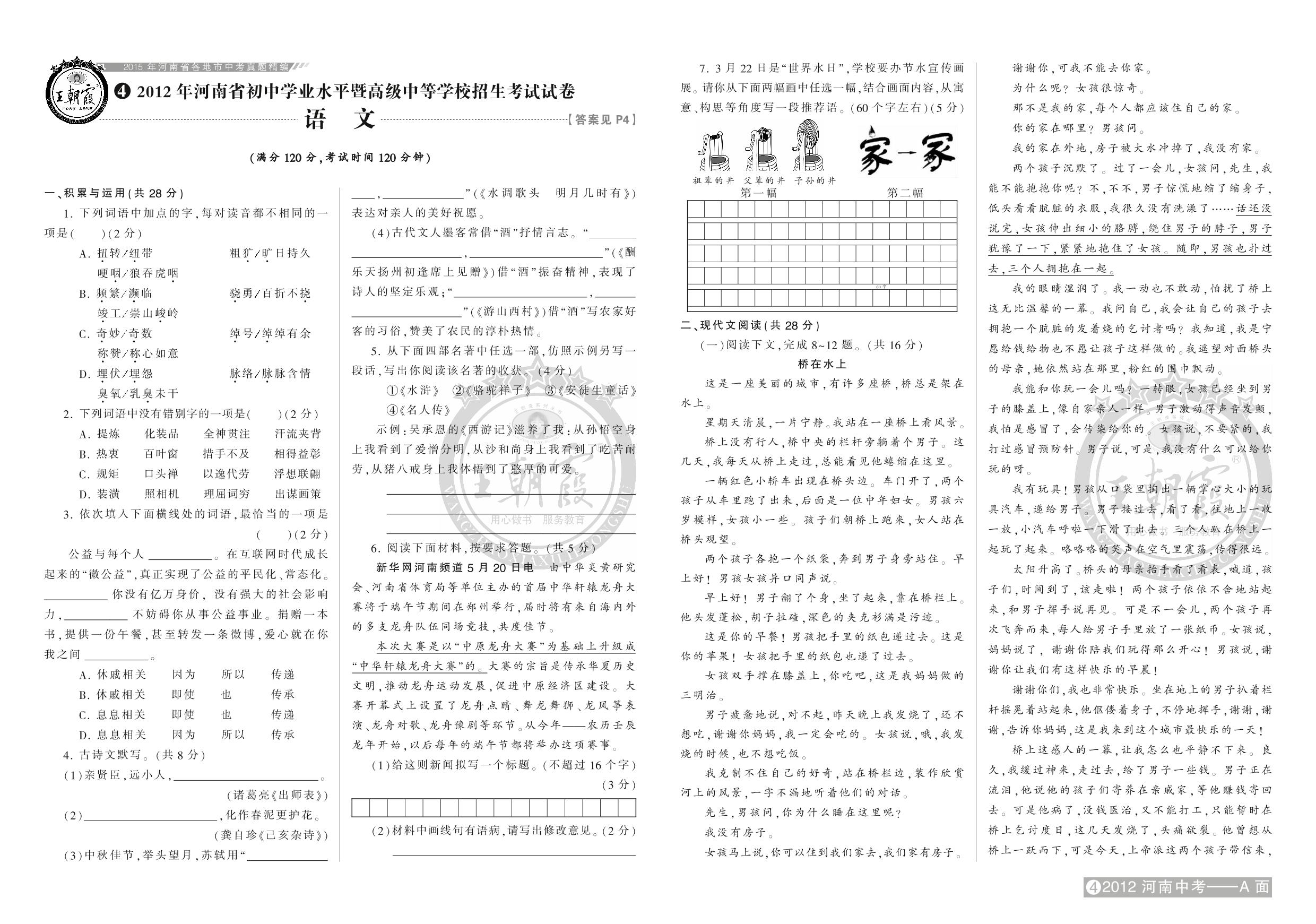 2012年河南省初中学业水平暨高级中等学校招生考试试卷【4】