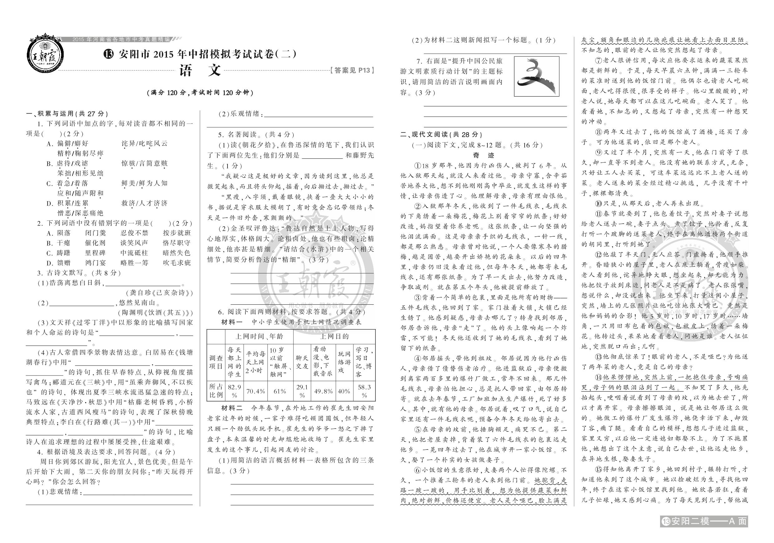 安阳市2015年中招模拟考试试卷(二)【13】