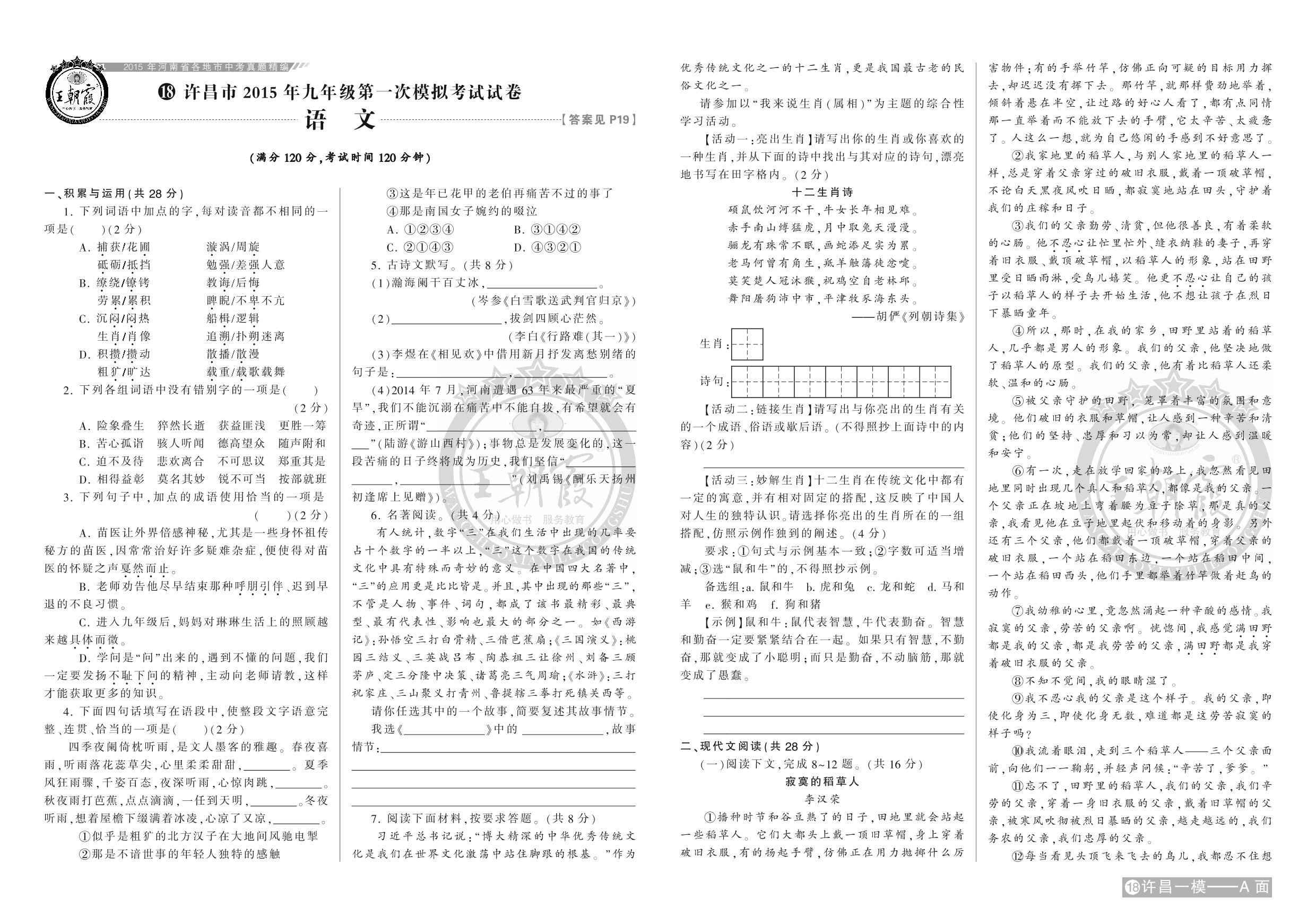 许昌市2015年九年级第一次模拟考试试卷【18】