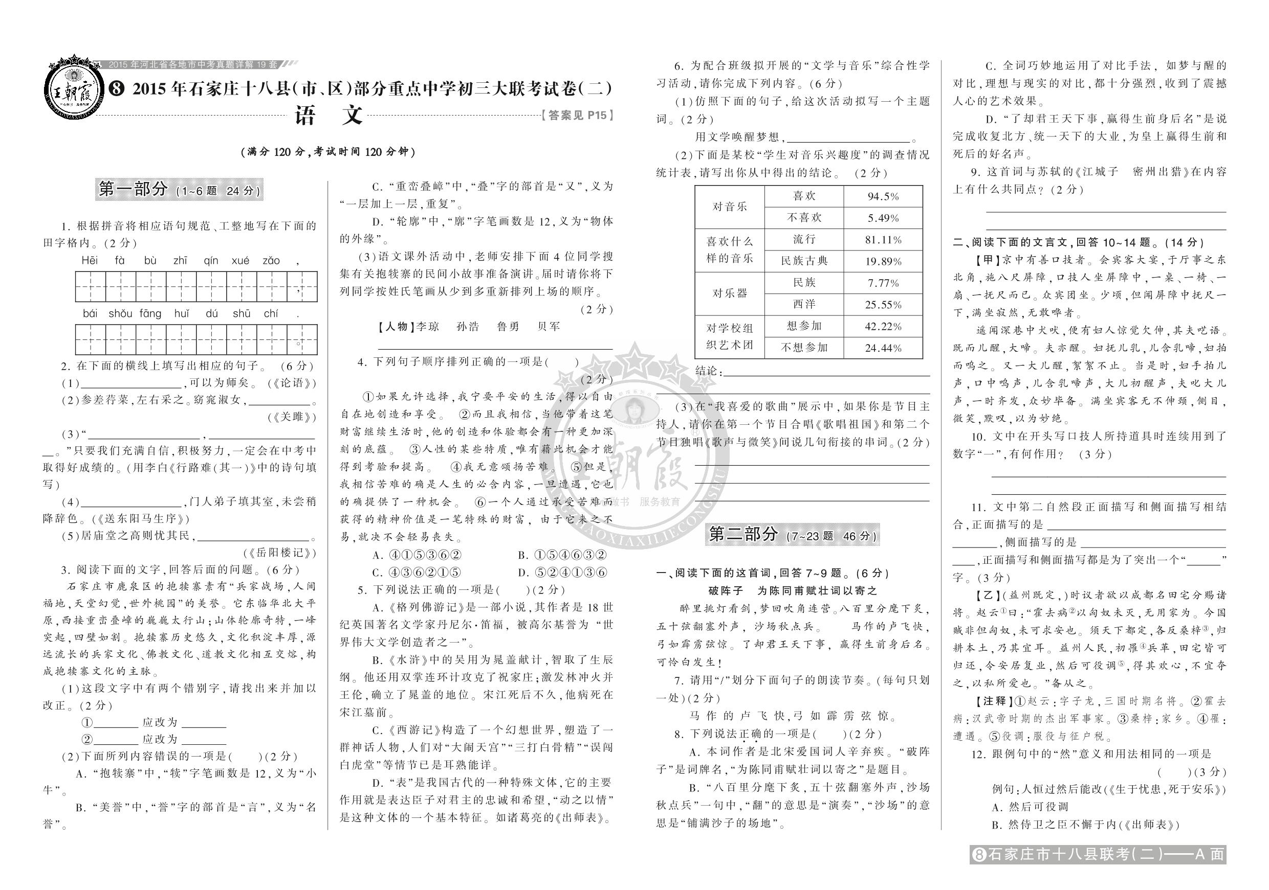 石家庄十八县(市、区)部分重点中学初三大联考试卷(二)【8】