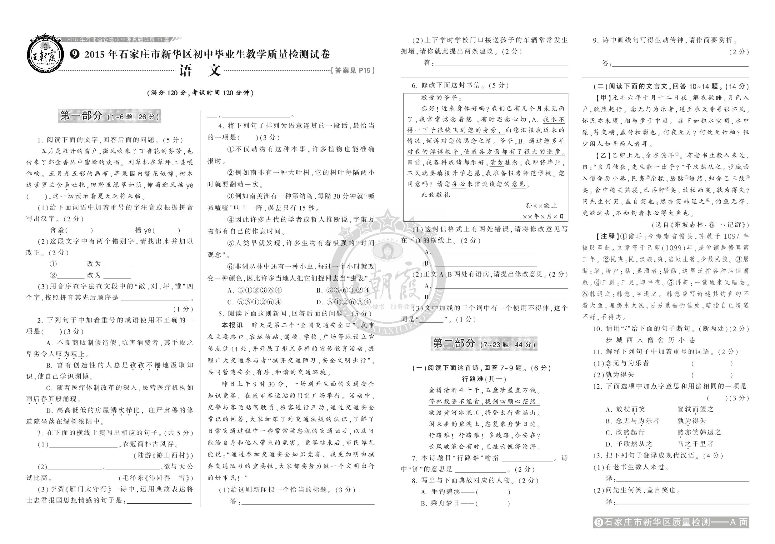 九年级语文全国通用中考卷