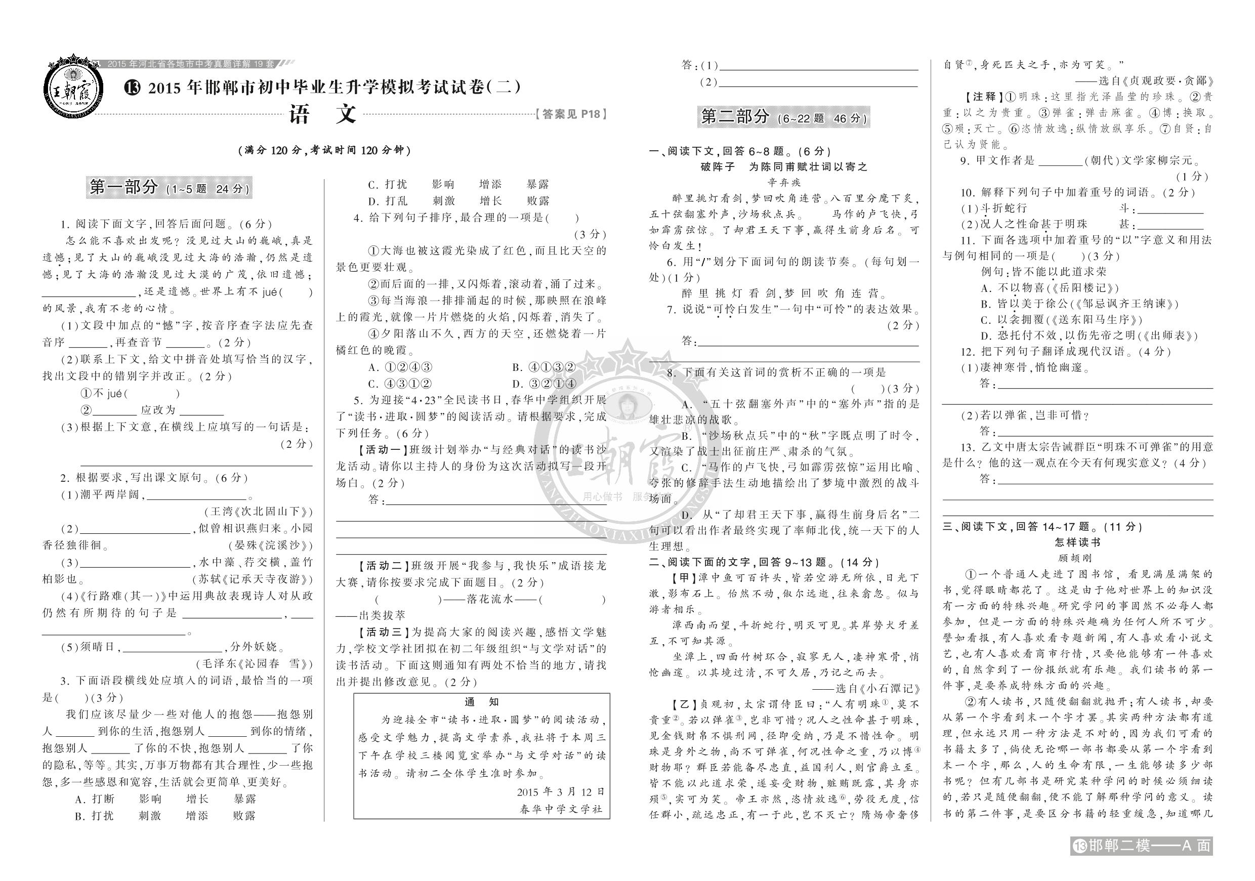 邯郸市初中毕业生升学模拟考试试卷(二)【13】