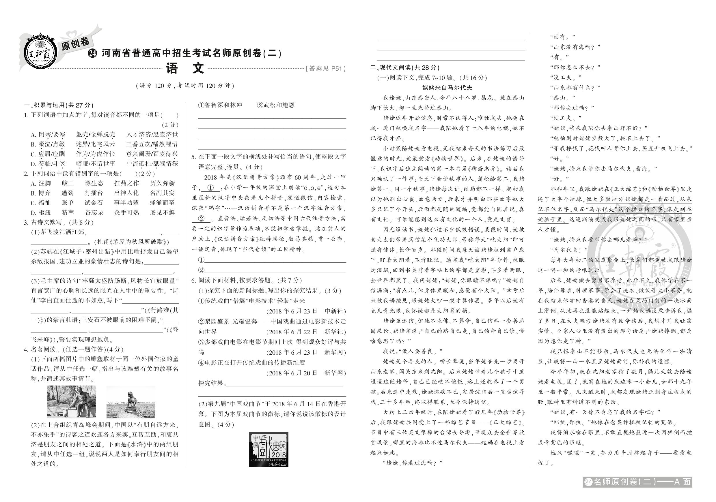 九年级语文全国通用中考卷