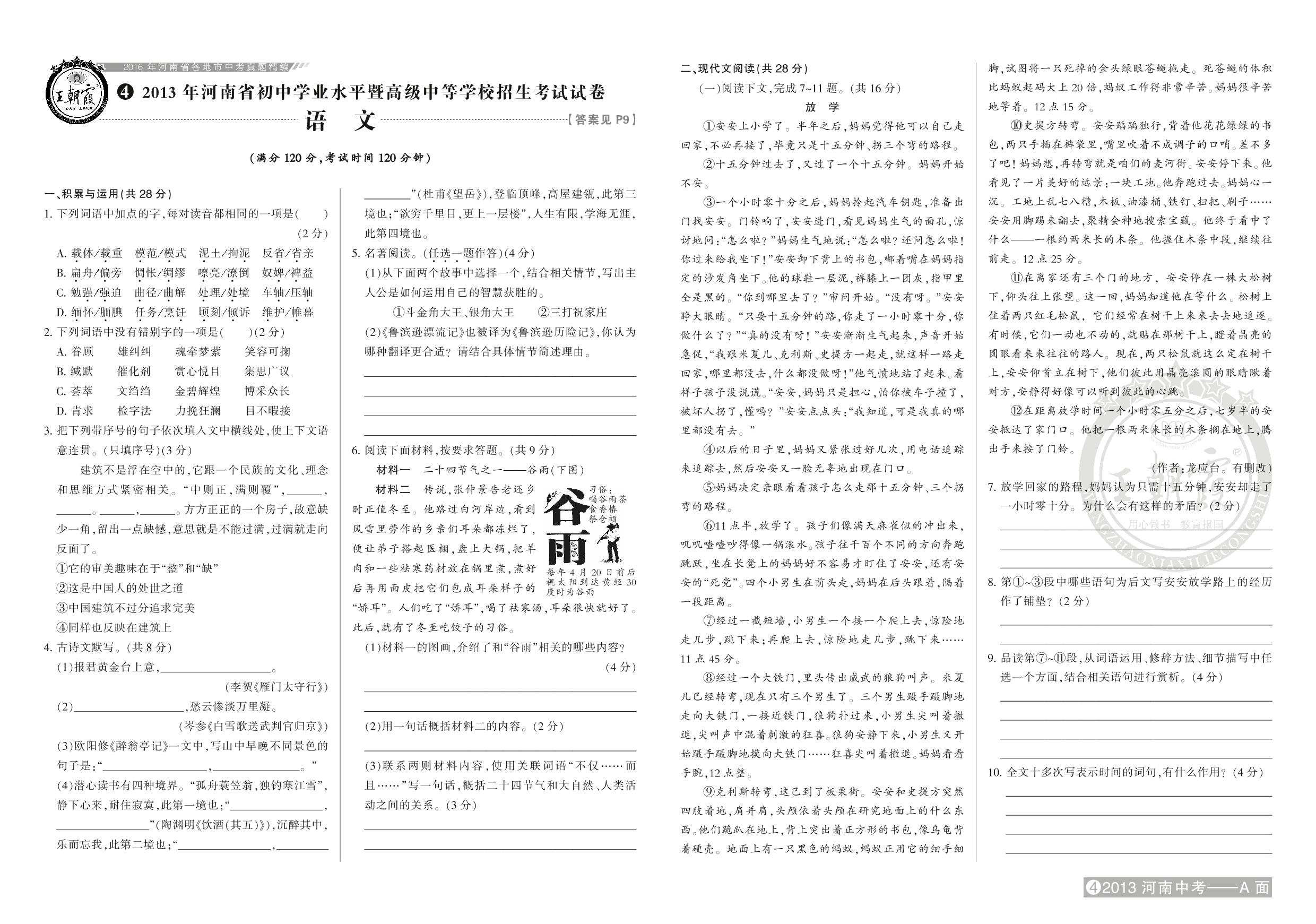 2013年河南省初中学业水平暨高级中等学校招生考试试卷【4】