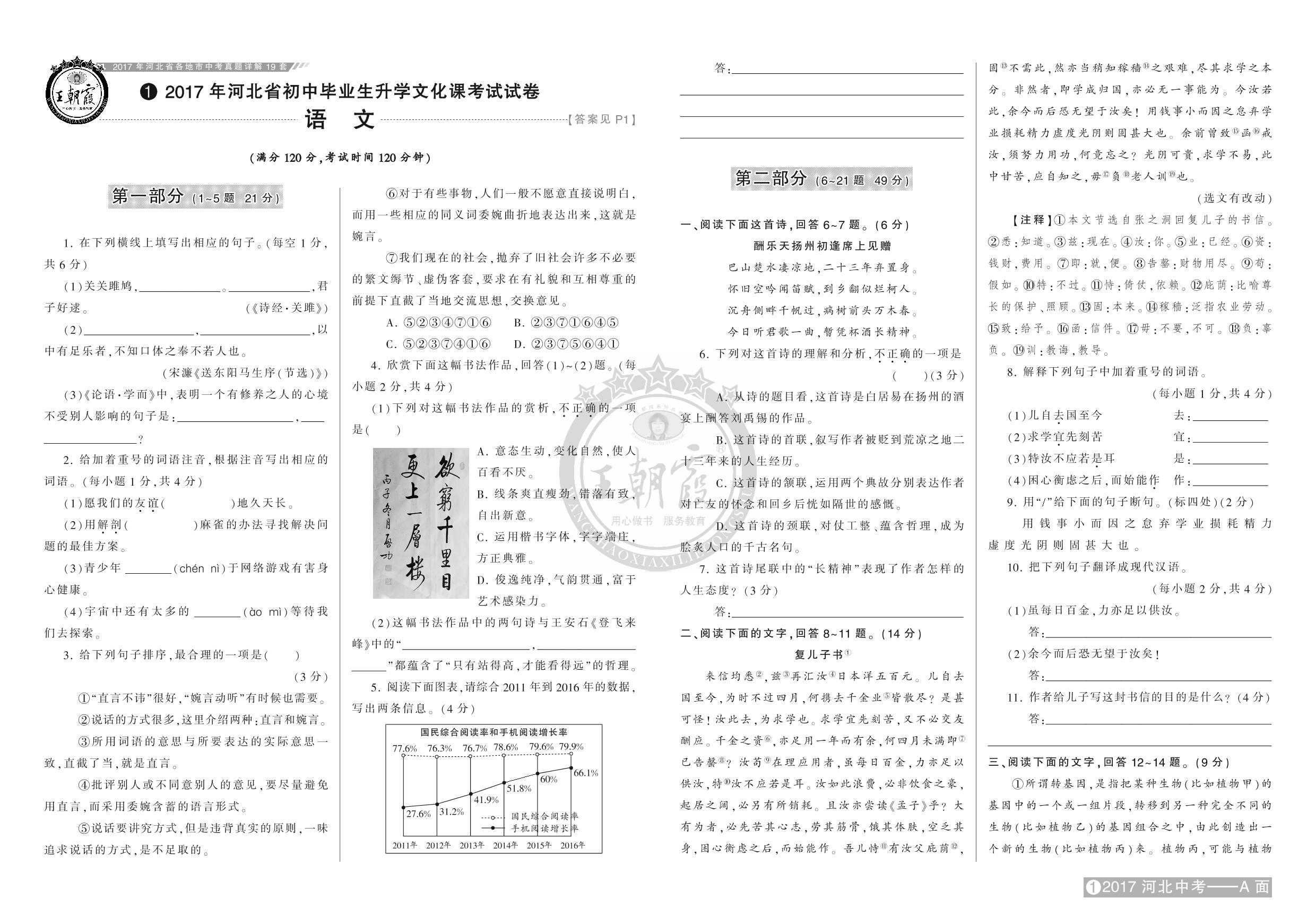 2017年河北省初中毕业升学文化课考试试卷【1】
