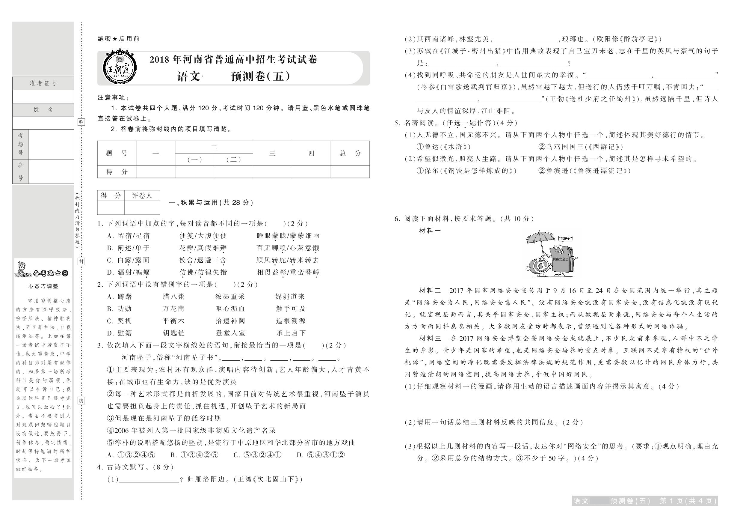 2018年河南省普通高中招生考试试卷语文·预测卷(五)