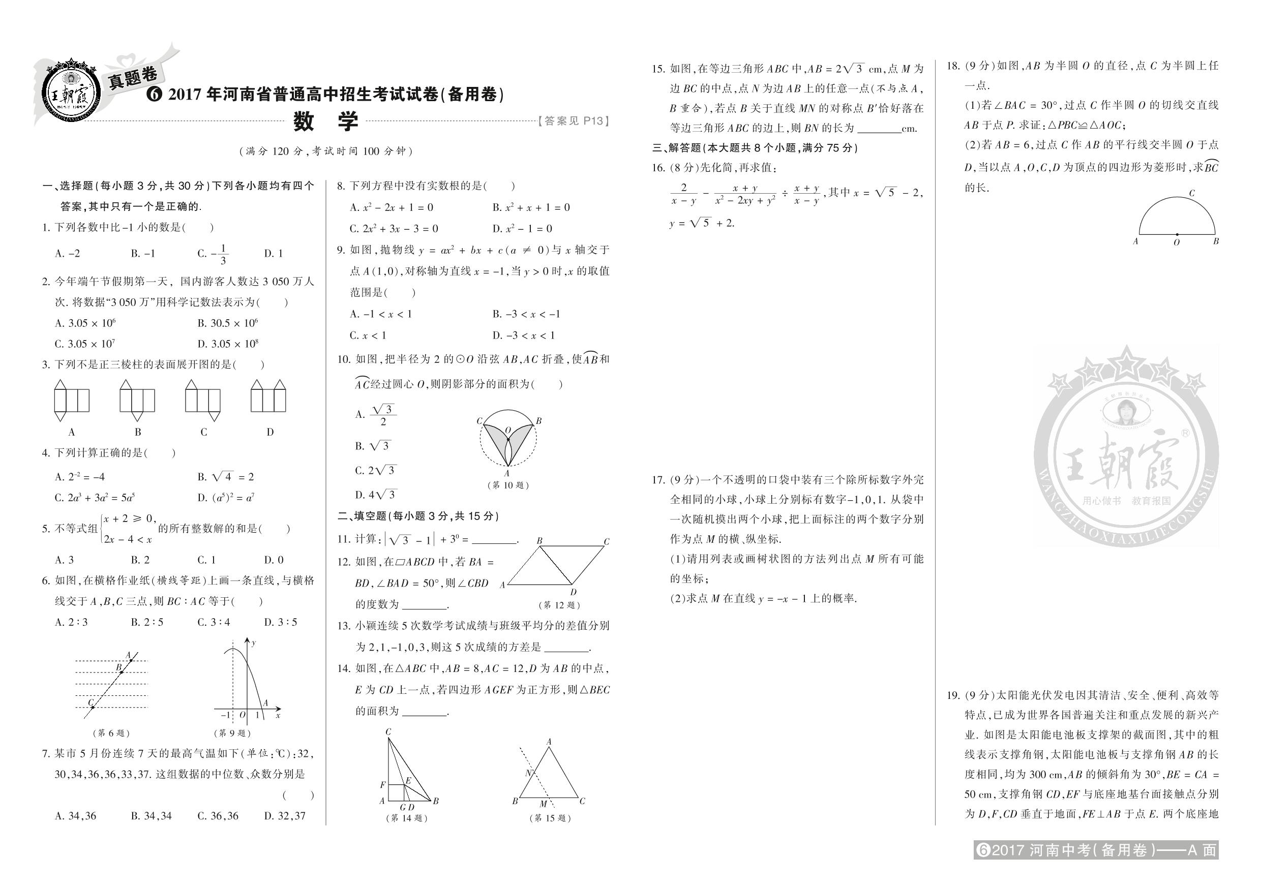 2017年河南省普通高中招生考试试卷(备用卷)【6】