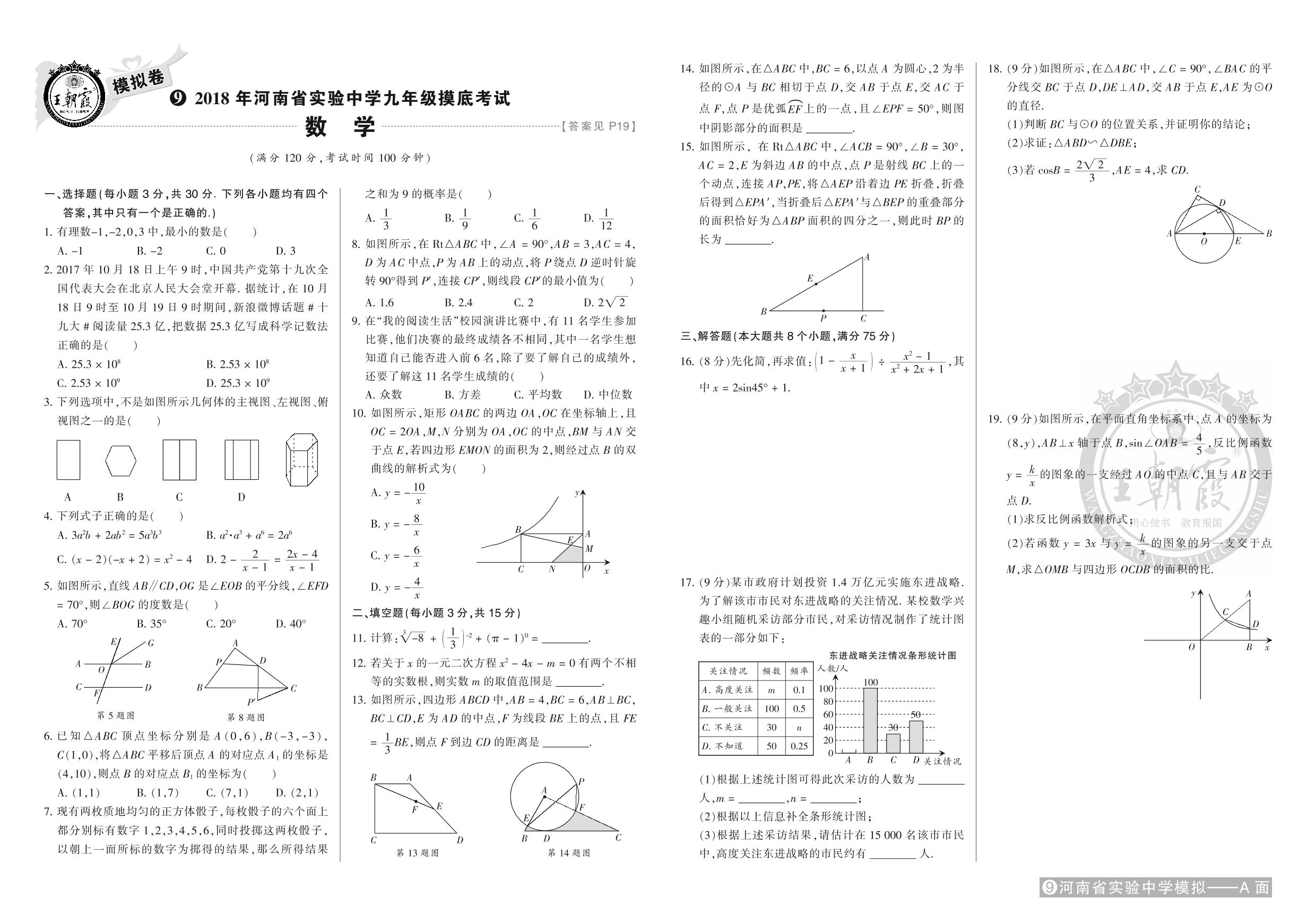 2018年河南省实验中学九年级摸底考试【9】