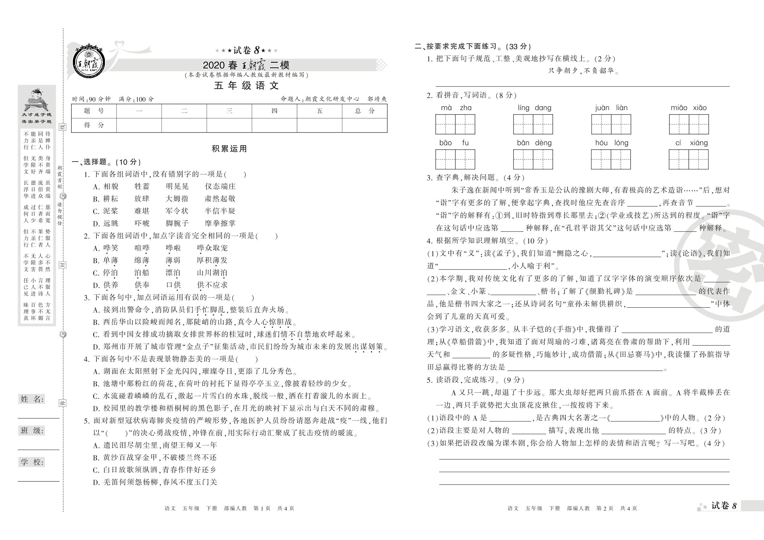 王朝霞期末模拟卷五年级下册语文(人教版)_R210801192938【8】