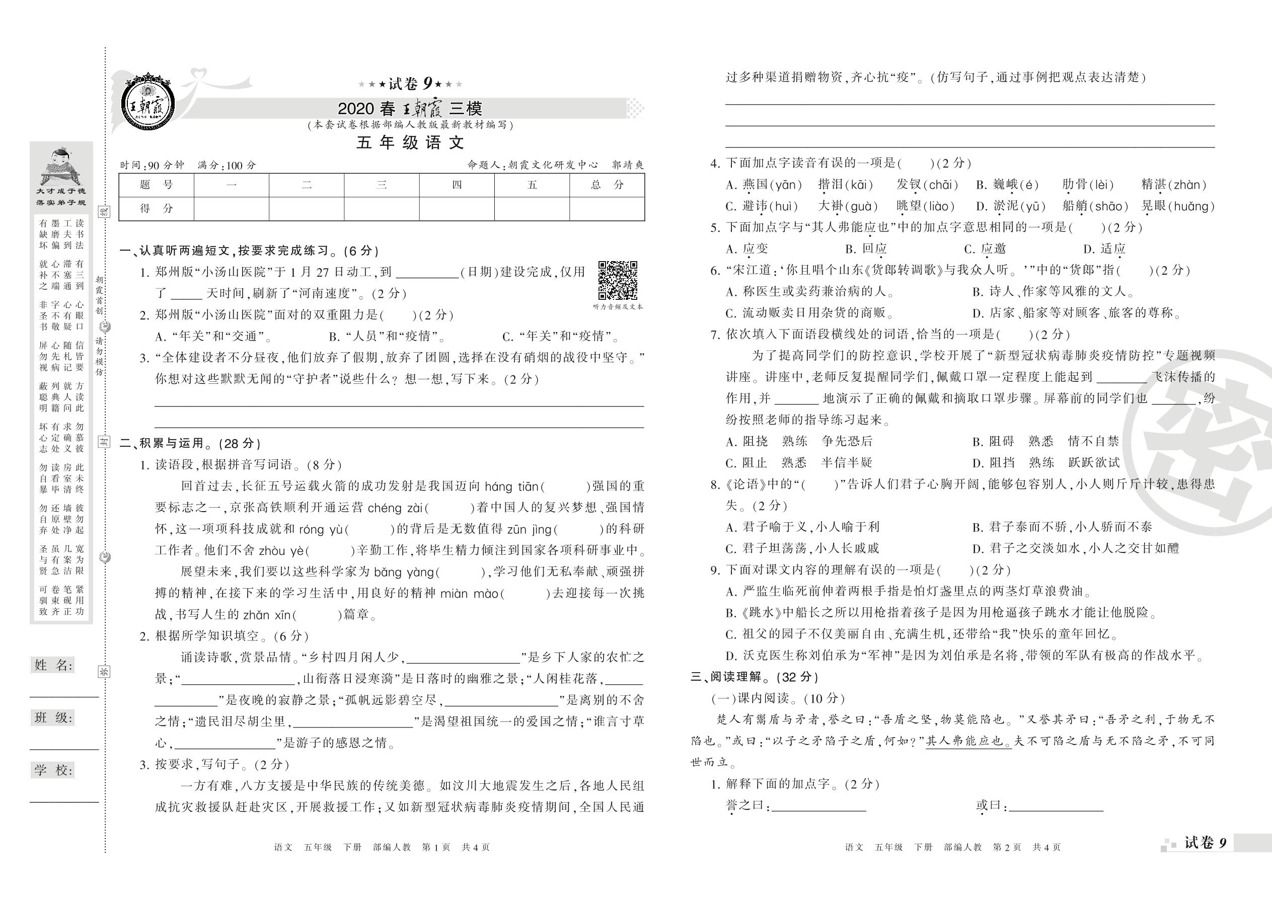王朝霞期末模拟卷五年级下册语文(人教版)_R210801192942【9】