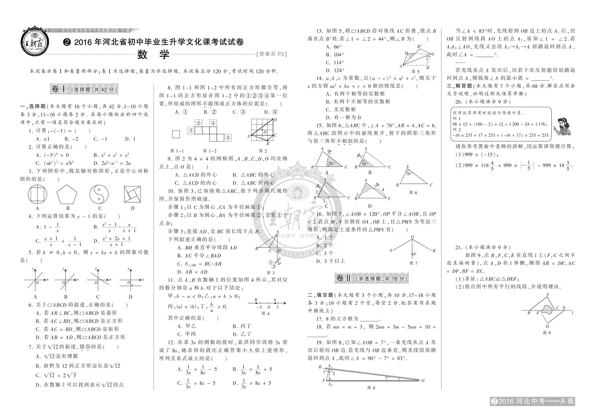 2016年河北省初中毕业升学文化课考试试卷【2】