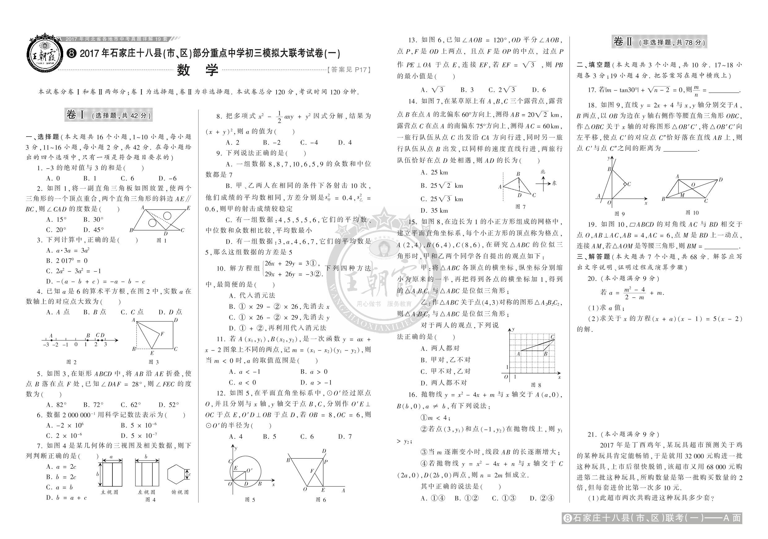 2017年石家庄十八县(市、区)部分重点中学初三模拟大联考试卷(一)【8】