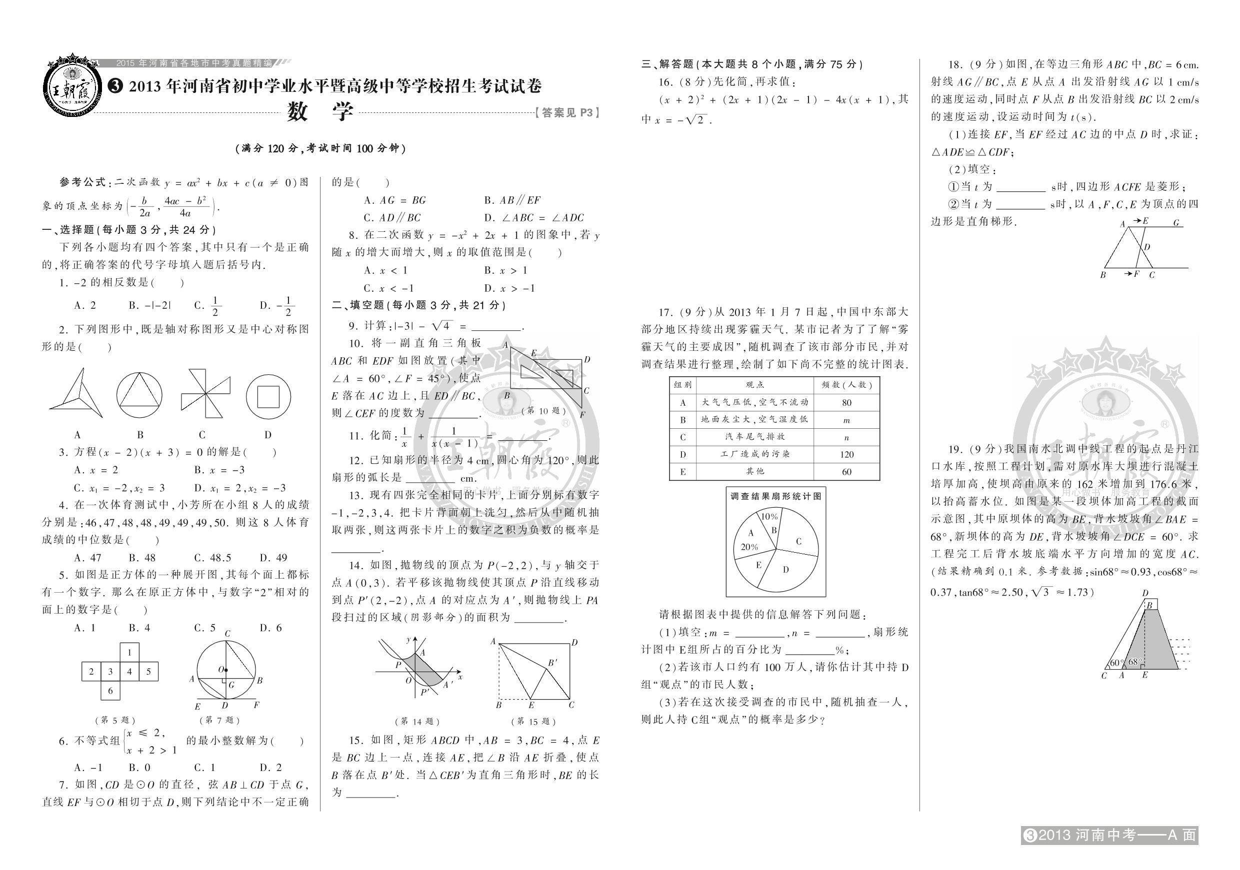 2013年河南省初中学业水平暨高级中等学校招生考试试卷【3】