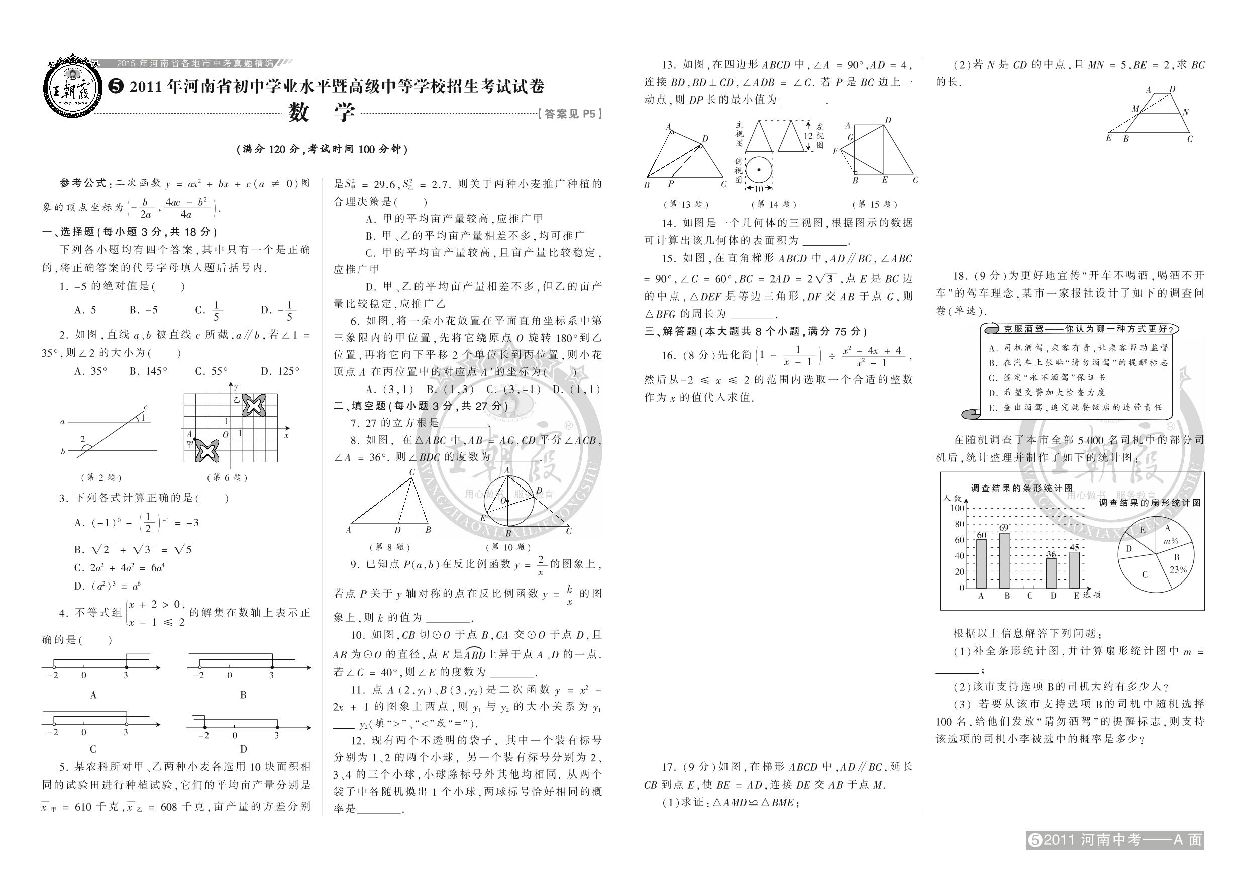 2011年河南省初中学业水平暨高级中等学校招生考试试卷【5】