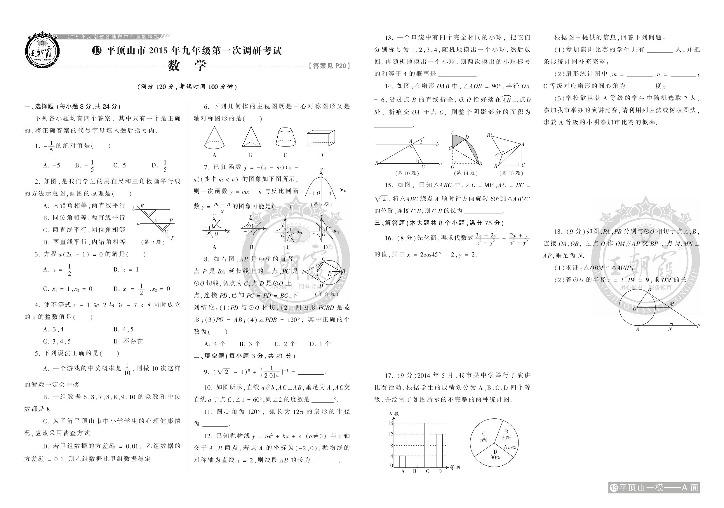 平顶山市2015年九年级第一次调研考试【13】